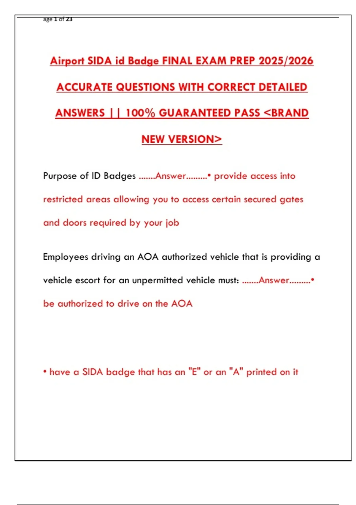 Airport SIDA id Badge FINAL EXAM PREP 2025/2026