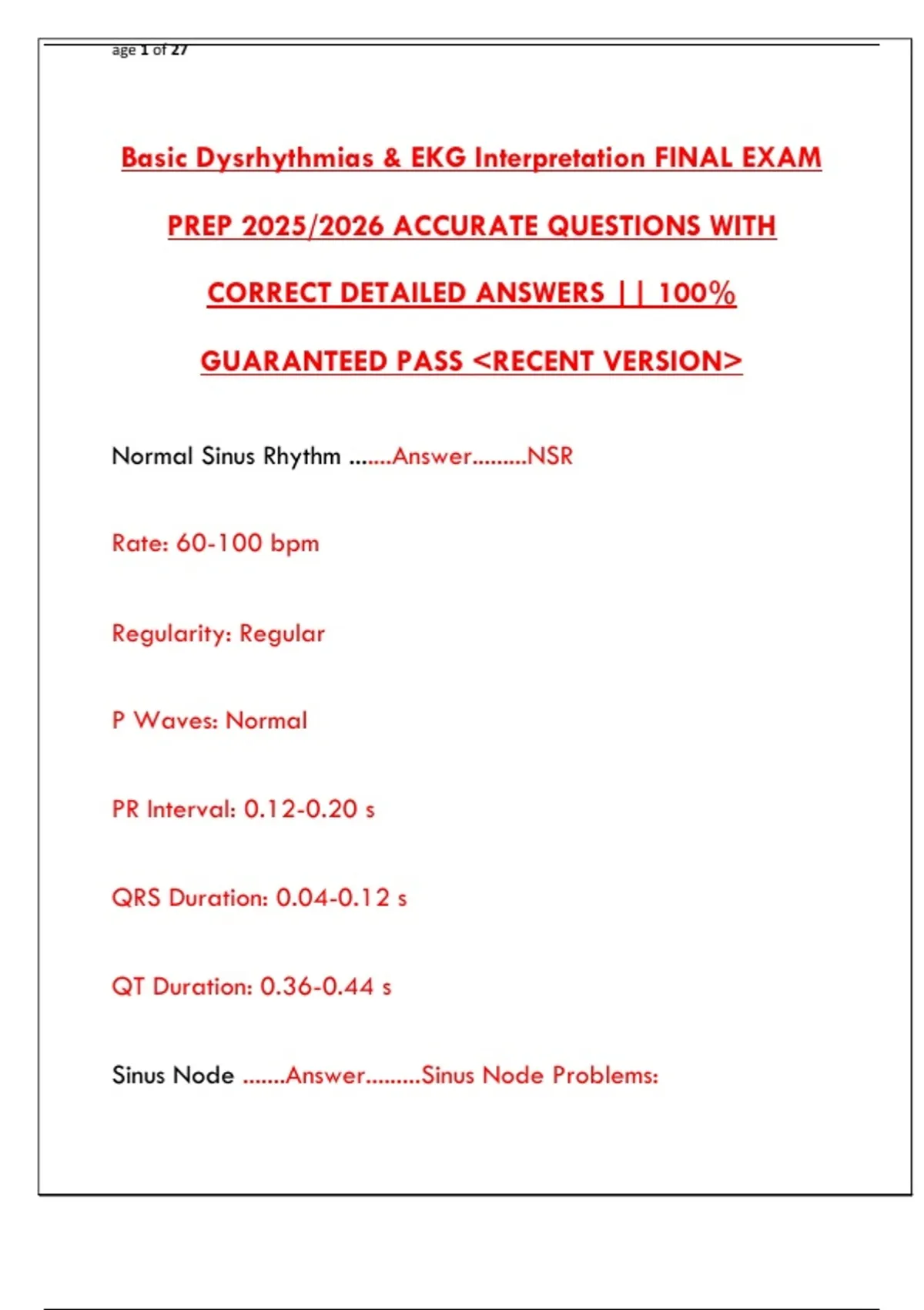 Ace your Basic Dysrhythmias EKG Interpretation Final Exam in 2025. This guide covers sinus rhythms, atrial rhythms, lethal ventricular rhythms, heart blocks, and a step-by-step study plan.