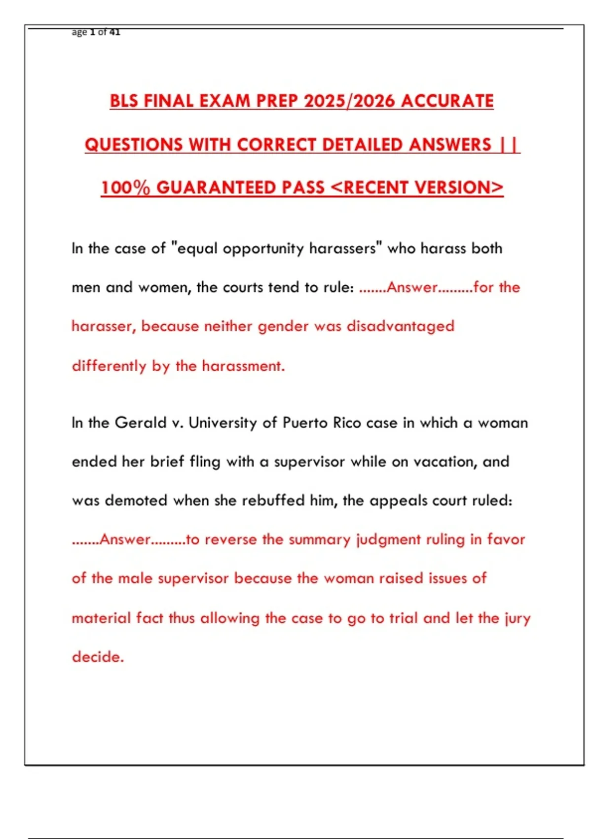 BLS FINAL EXAM PREP 2025/2026 ACCURATE