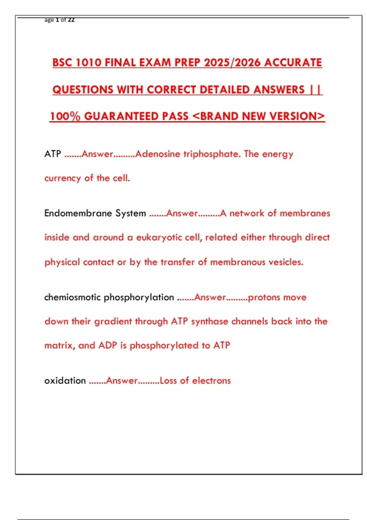 BSC 1010 FINAL EXAM PREP 2025/2026 ACCURATE