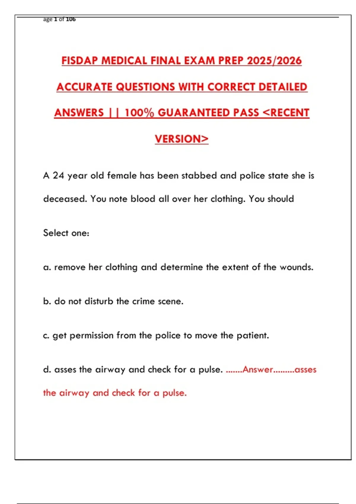 d. asses the airway and check for a pulse. .......Answer.........asses