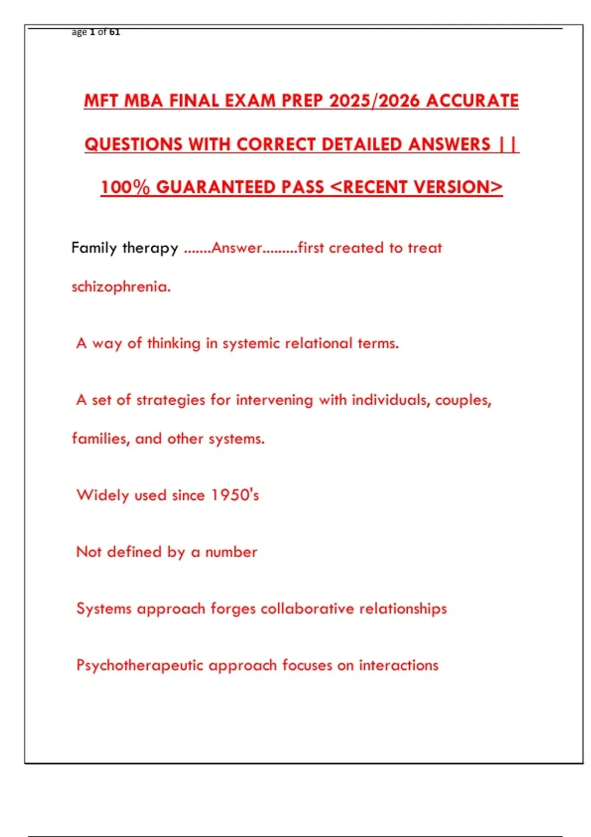 MFT MBA FINAL EXAM PREP 2025/2026 ACCURATE