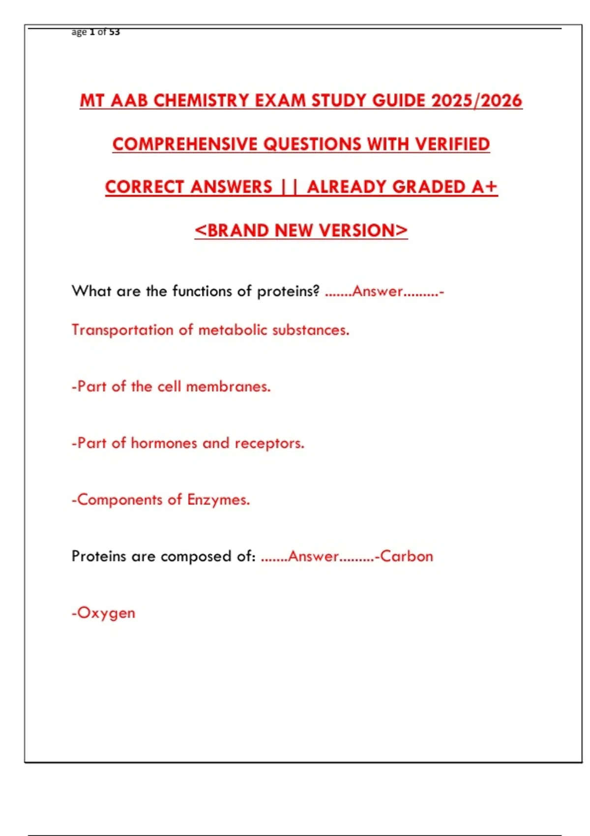 MT AAB CHEMISTRY EXAM STUDY GUIDE 2025/2026