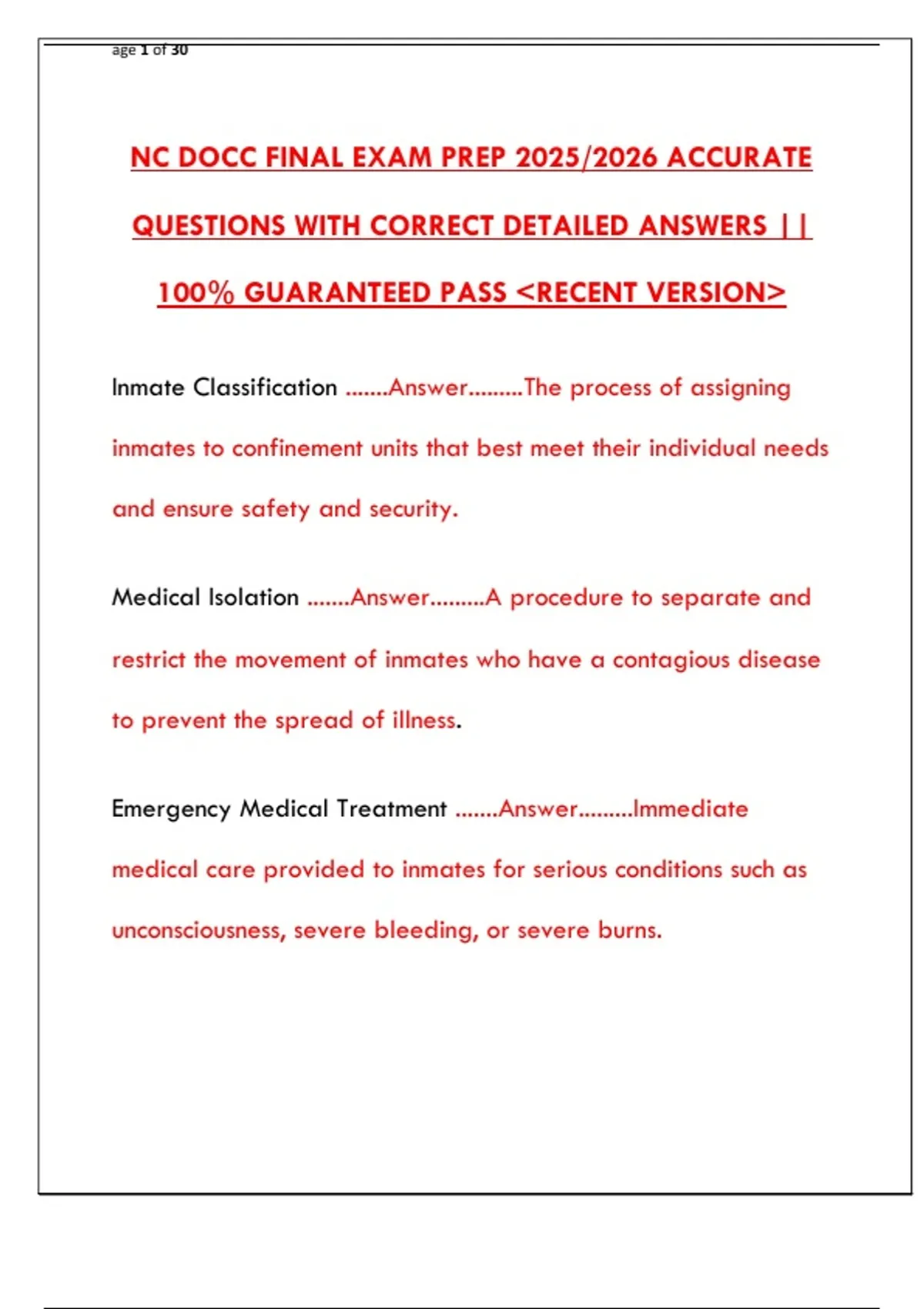 NC DOCC FINAL EXAM PREP 2025/2026 ACCURATE