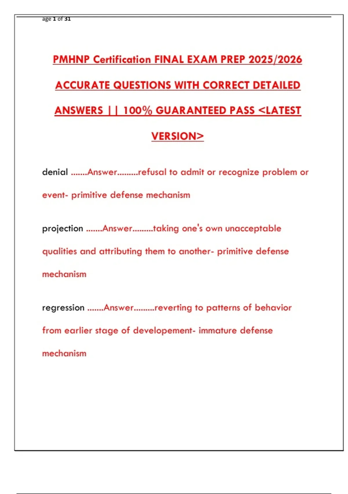 PMHNP Certification FINAL EXAM PREP 2025/2026