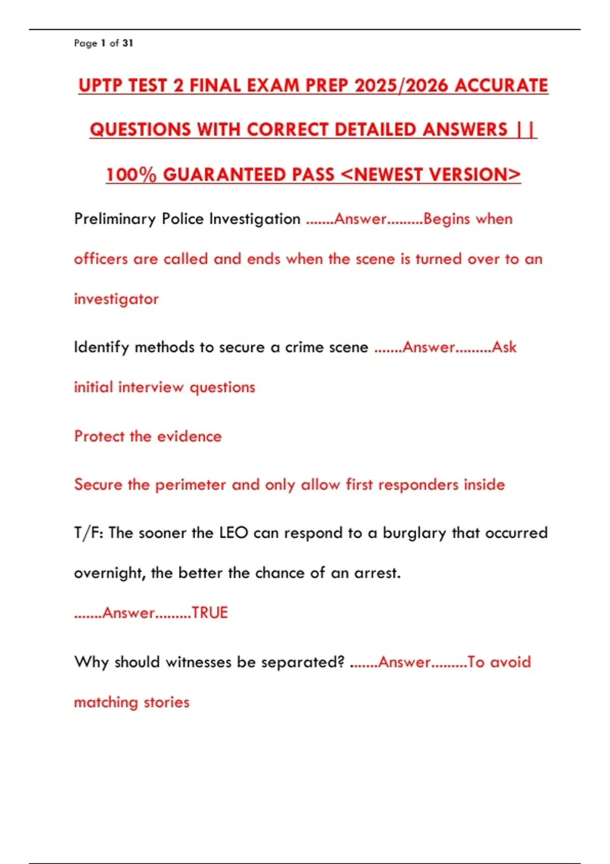 UPTP TEST 2 FINAL EXAM PREP 2025/2026 ACCURATE