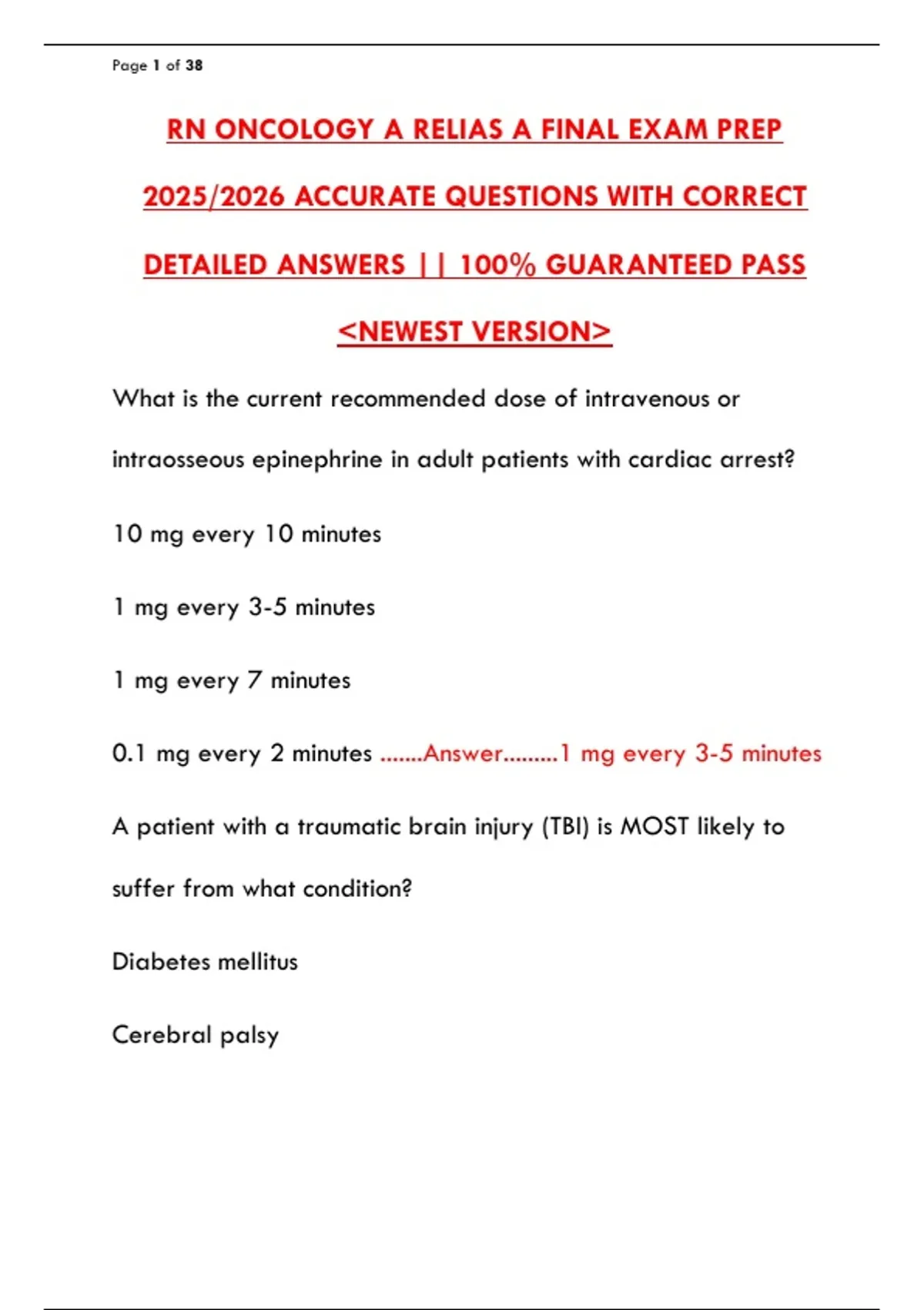 RN ONCOLOGY A RELIAS A FINAL EXAM PREP