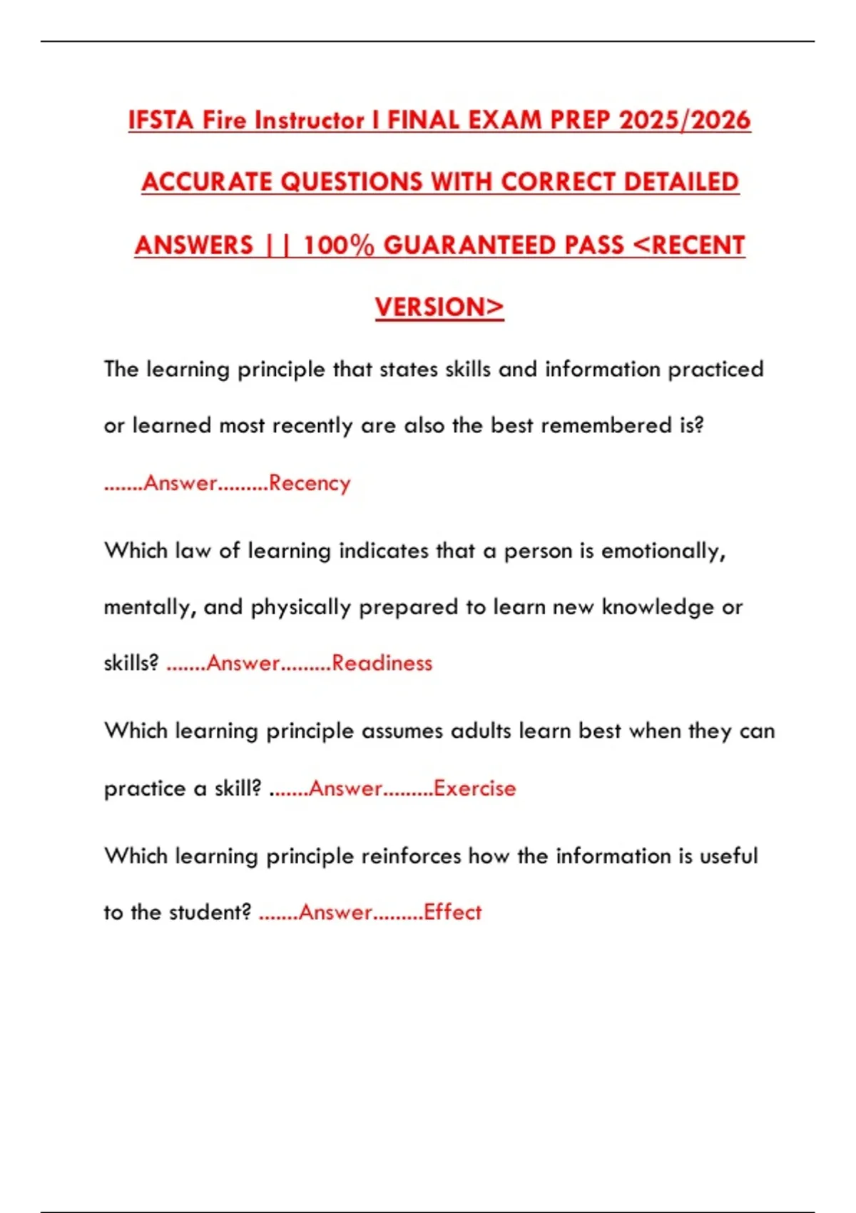 IFSTA Fire Instructor I FINAL EXAM PREP 2025/2026