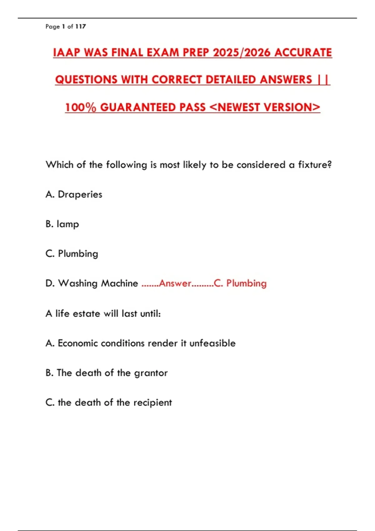 IAAP WAS FINAL EXAM PREP 2025/2026 ACCURATE