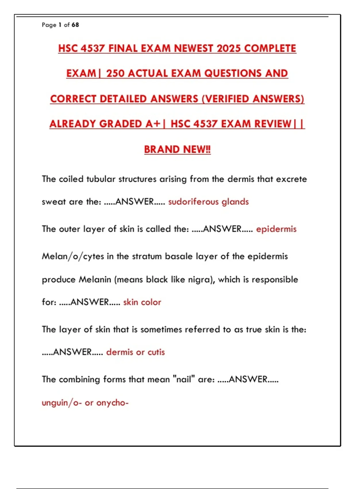 ALREADY GRADED A+| HSC 4537 EXAM REVIEW||