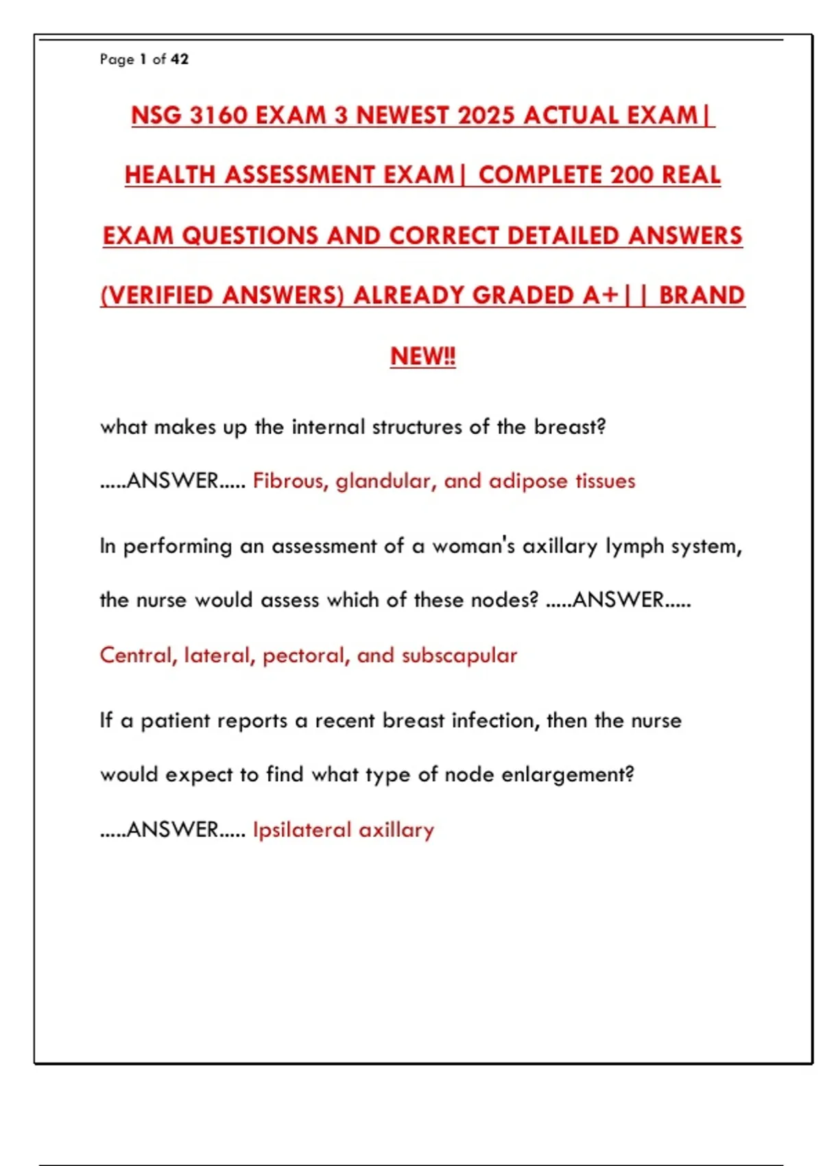 HEALTH ASSESSMENT EXAM| COMPLETE 200 REAL