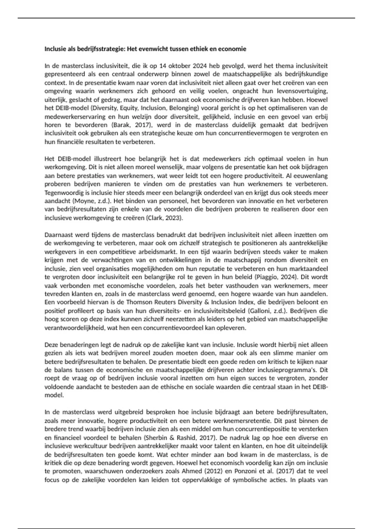 zonder echt moeite te doen om de werkcultuur inclusiever te maken (Ponzoni et al., 2017). In de
