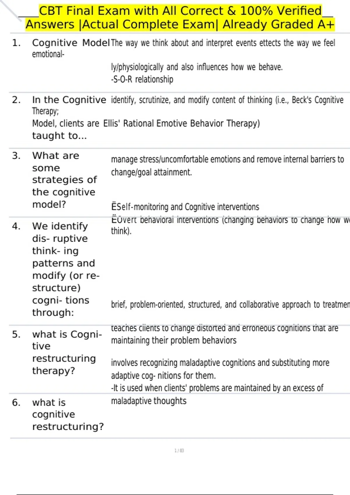1. Cognitive Model The way we think about and interpret events ettects the way we feel