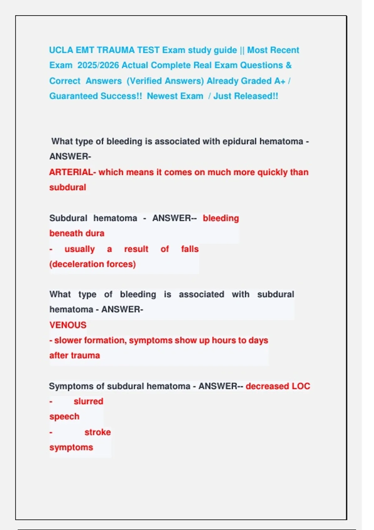 Symptoms of subdural hematoma - ANSWER-- decreased LOC