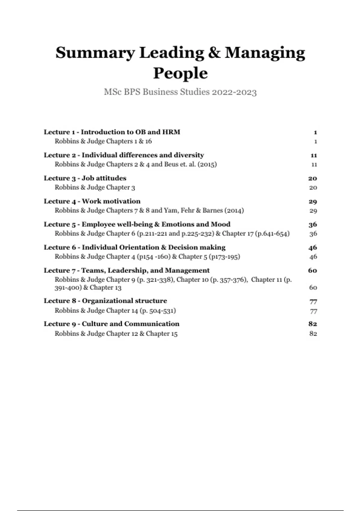 Samenvatting van 93 pagina's voor het vak Leading & Managing People aan de UL