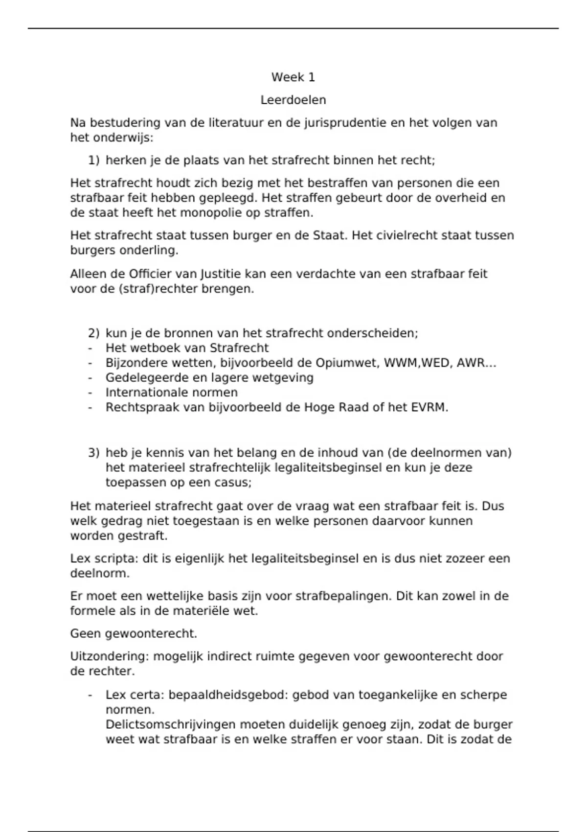 Dit document is een uitwerking van de leerdoelen van het vak Inleiding Strafrecht van week 1 t/m week 3.