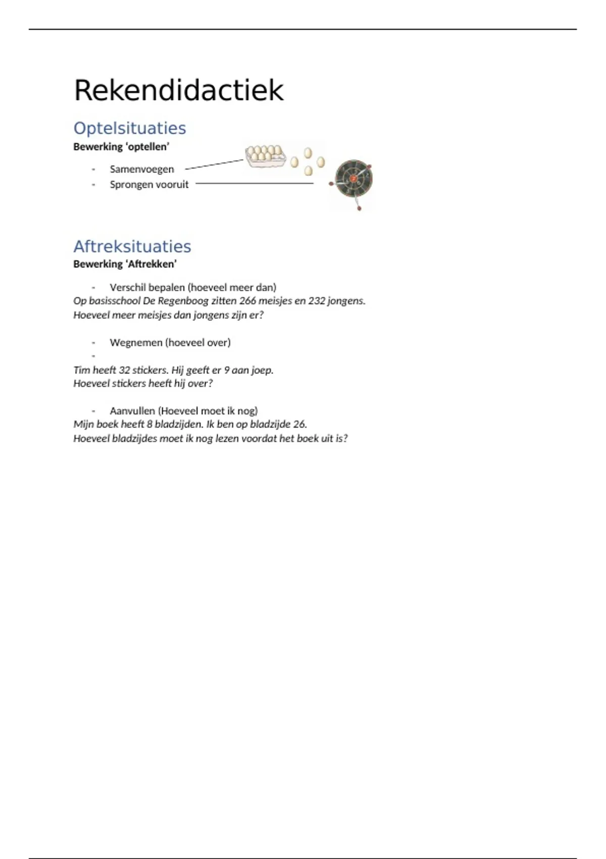 Samenvatting voor de toets RW2 rekendidactiek. Inclusief plaatjes en voorbeelden
