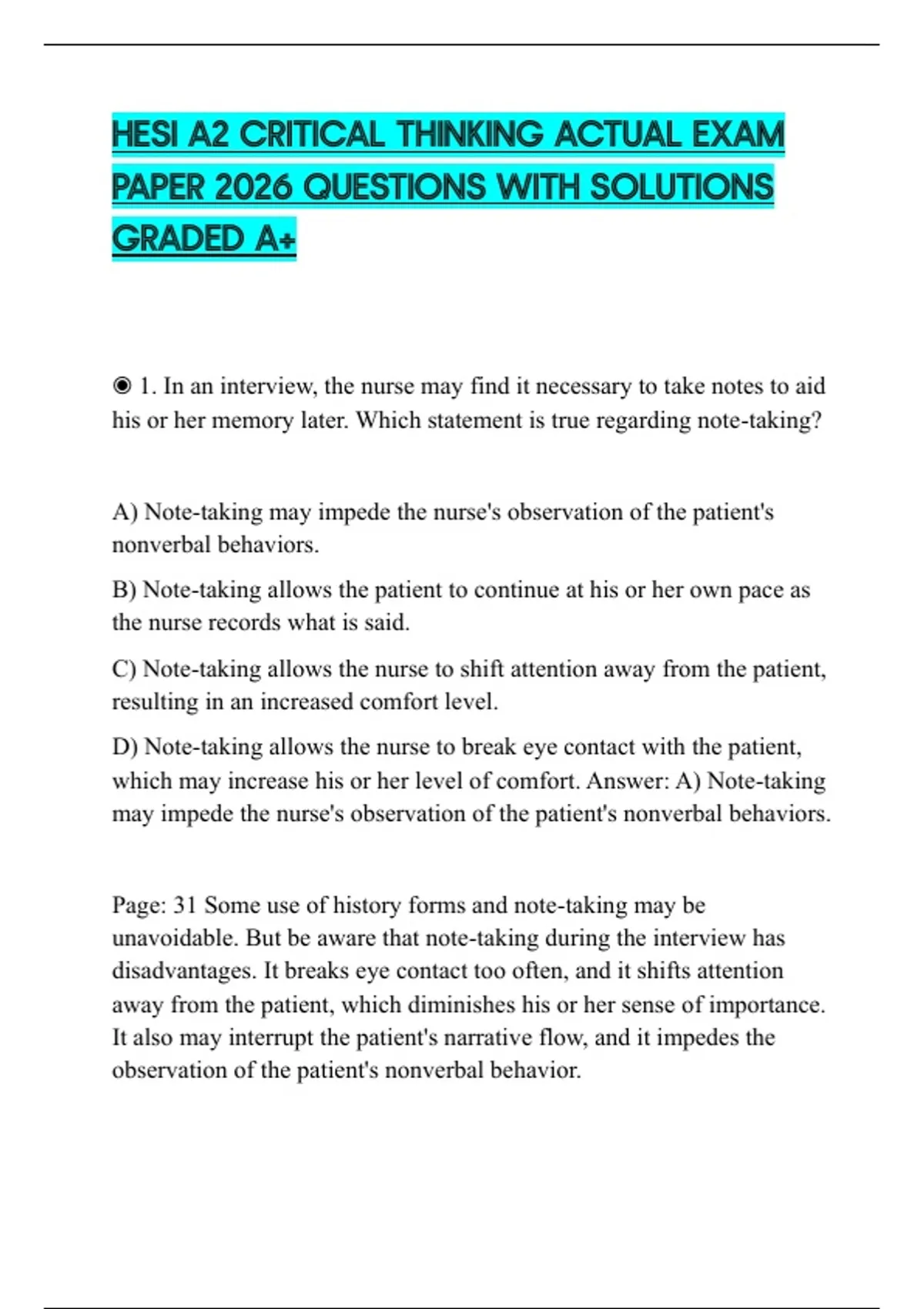 ◉ 1. In an interview, the nurse may find it necessary to take notes to aid