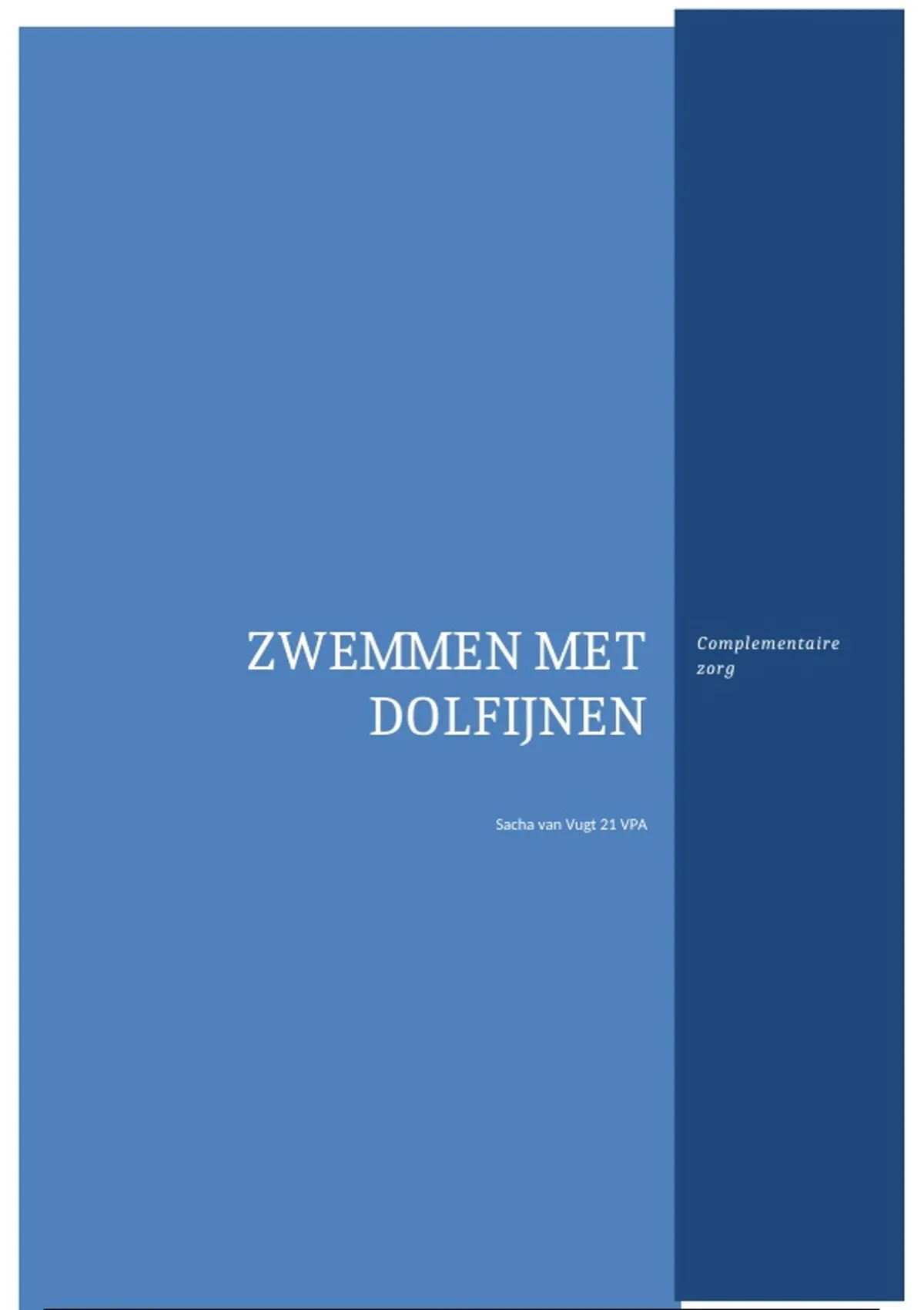 In deze presentatie wordt kort en duidelijk uitgelegd waarom zwemmen met dolfijnen een vorm van complementaire zorg is.
