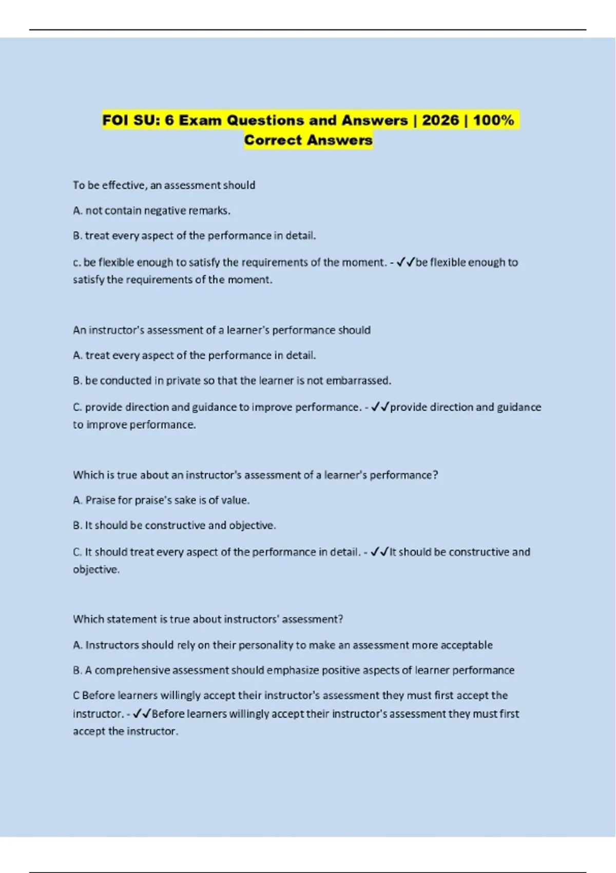 FOI SU: 6 Exam Questions and Answers | 2026 | 100% Correct Answers