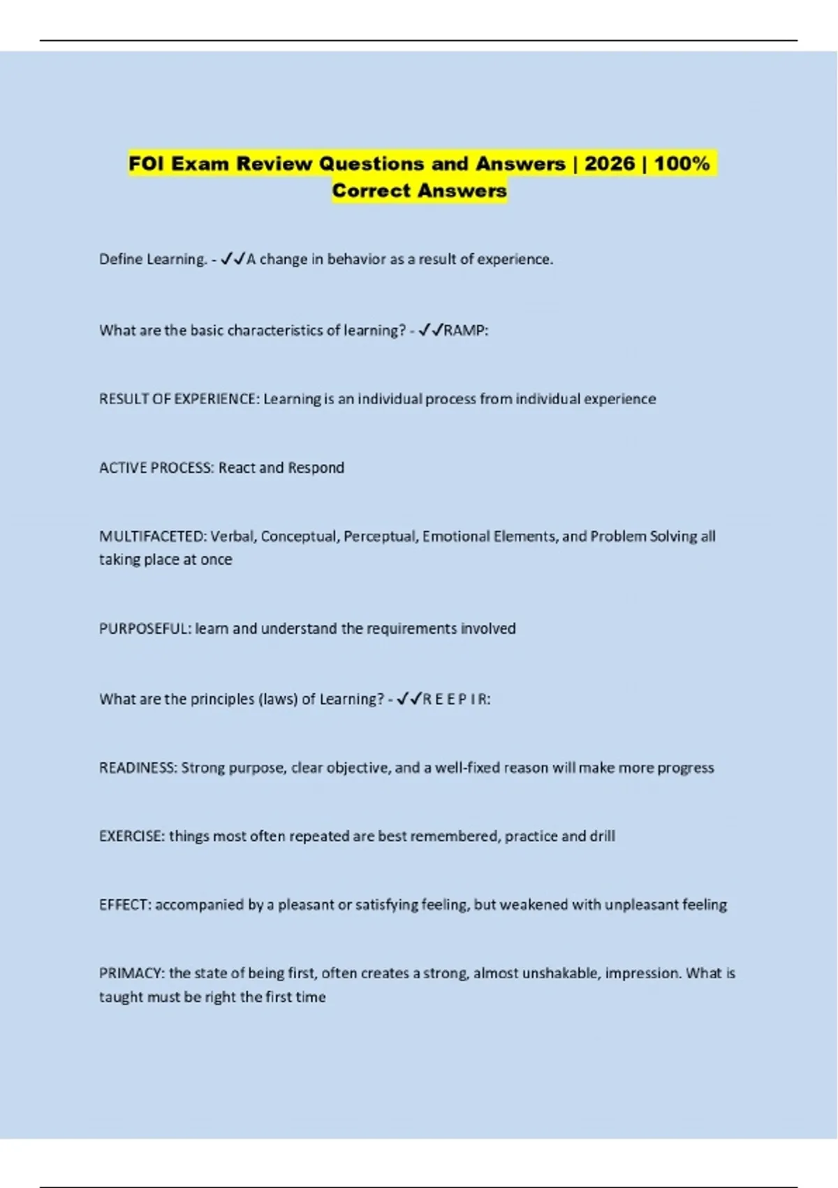 FOI Exam Review Questions and Answers | 2026 | 100% Correct Answers