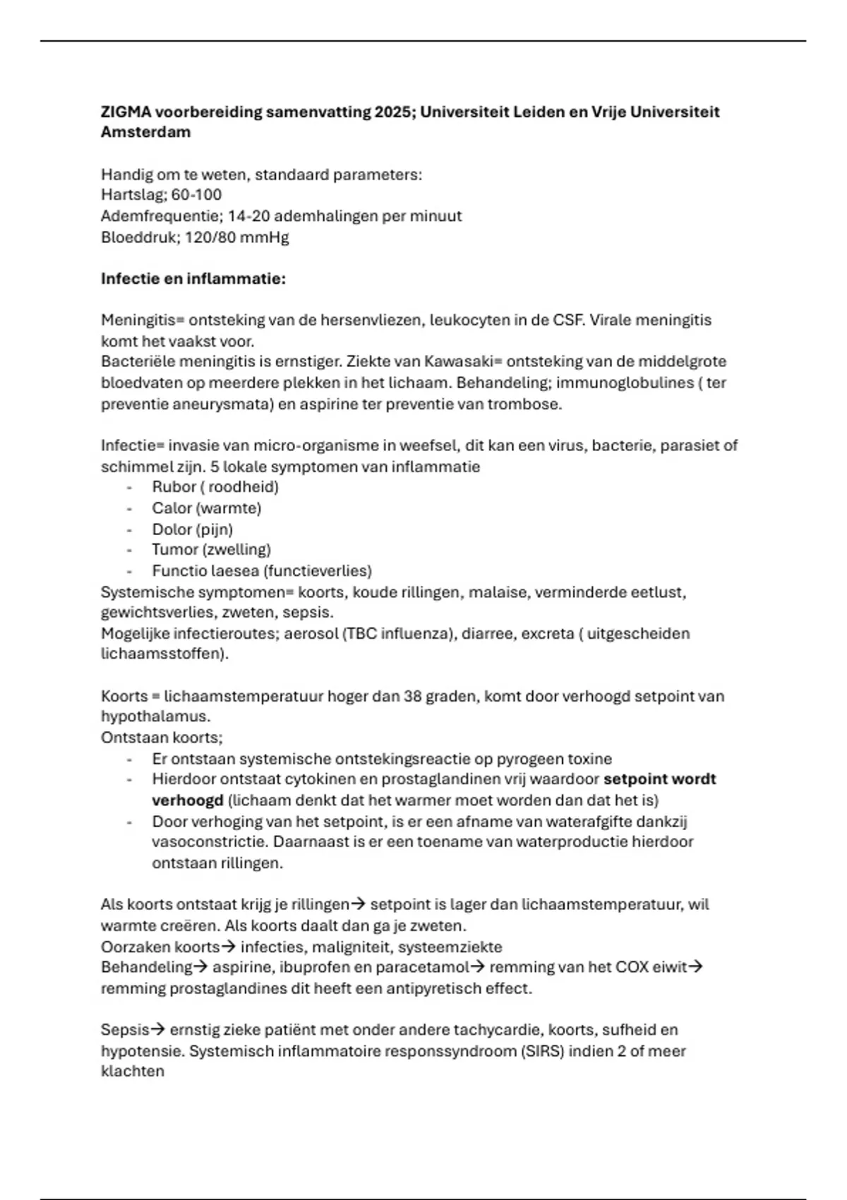 ontstekingsreactie veroorzaakt door een infectie, de SIRS criteria worden hiervoor