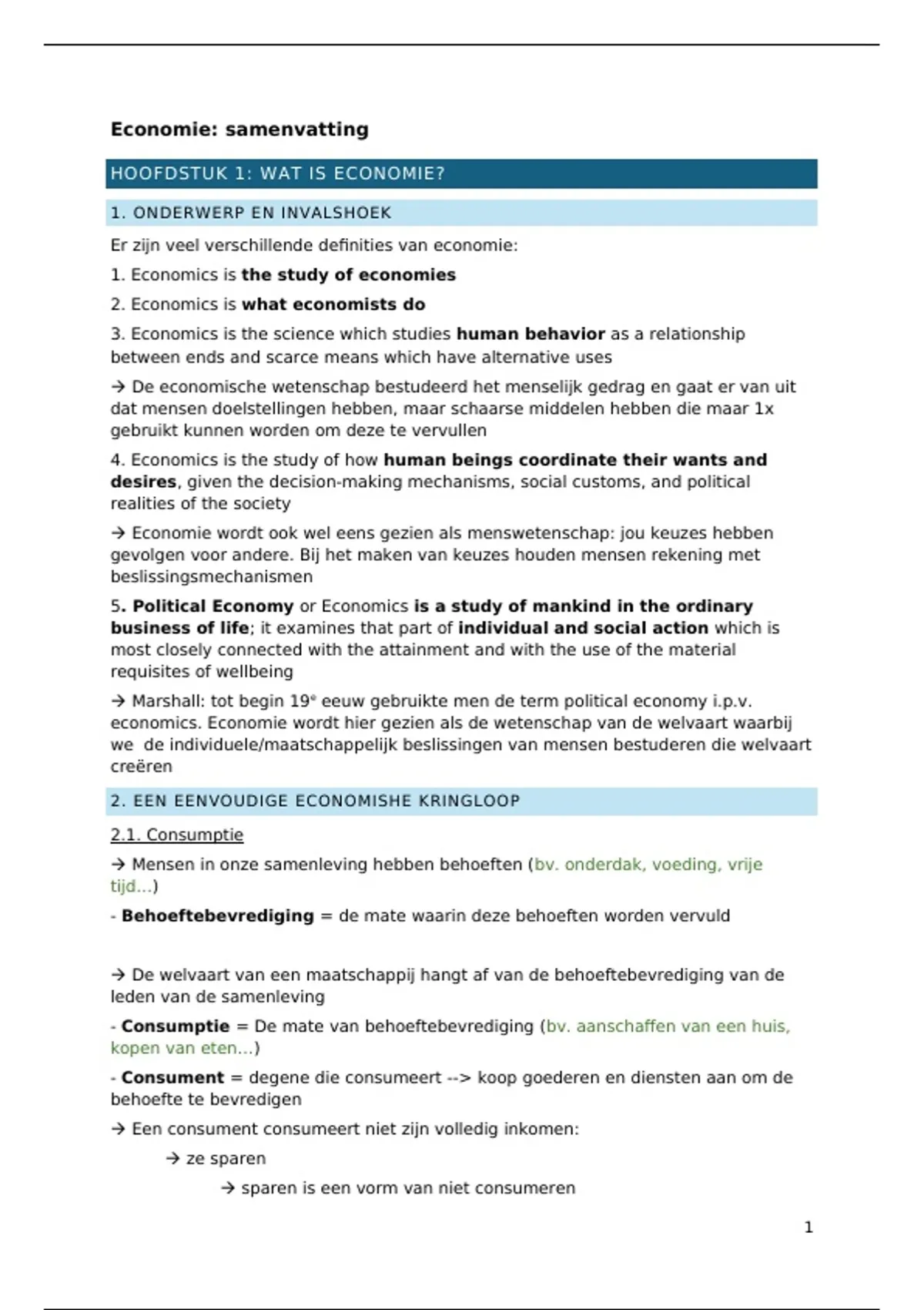 HOOFDSTUK 1: WAT IS ECONOMIE?
