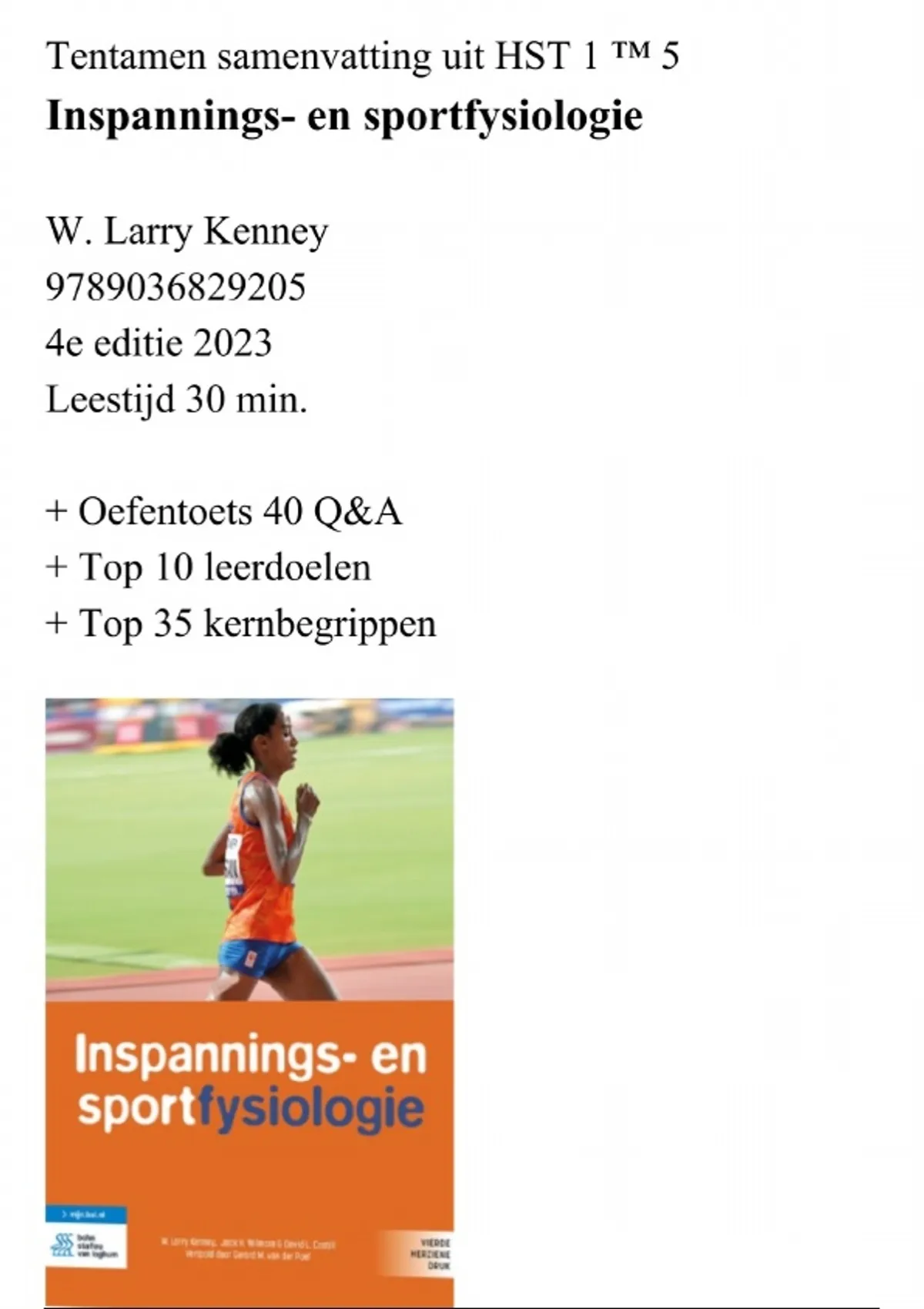 Samenvatting Inspannings- en sportfysiologie - HST 1 tm 5 - W. Larry Kenney / 9789036829205 / + oefentoets + leerdoelen