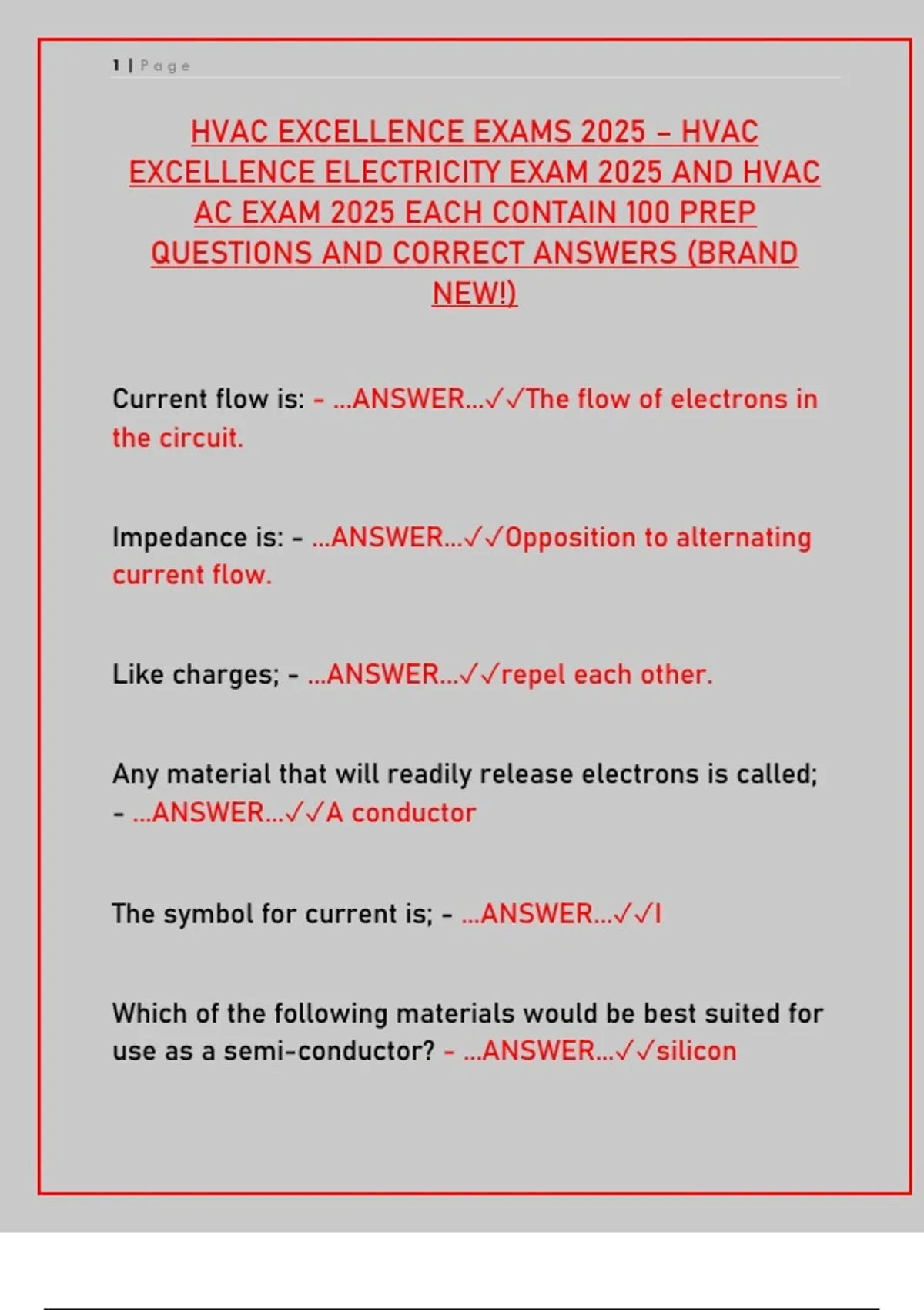 EXCELLENCE ELECTRICITY EXAM 2025 AND HVAC