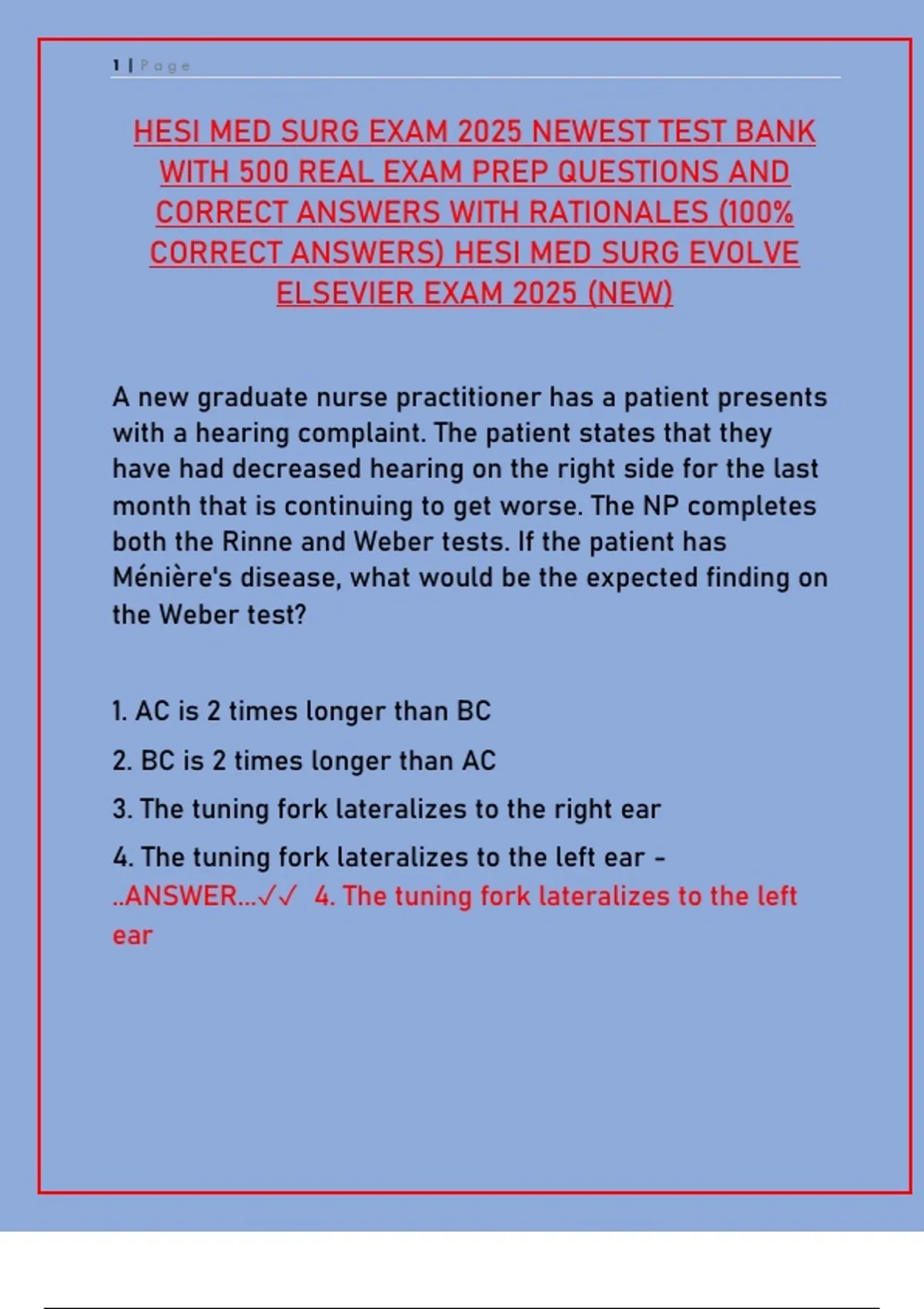 HESI MED SURG EXAM 2025 NEWEST TEST BANK