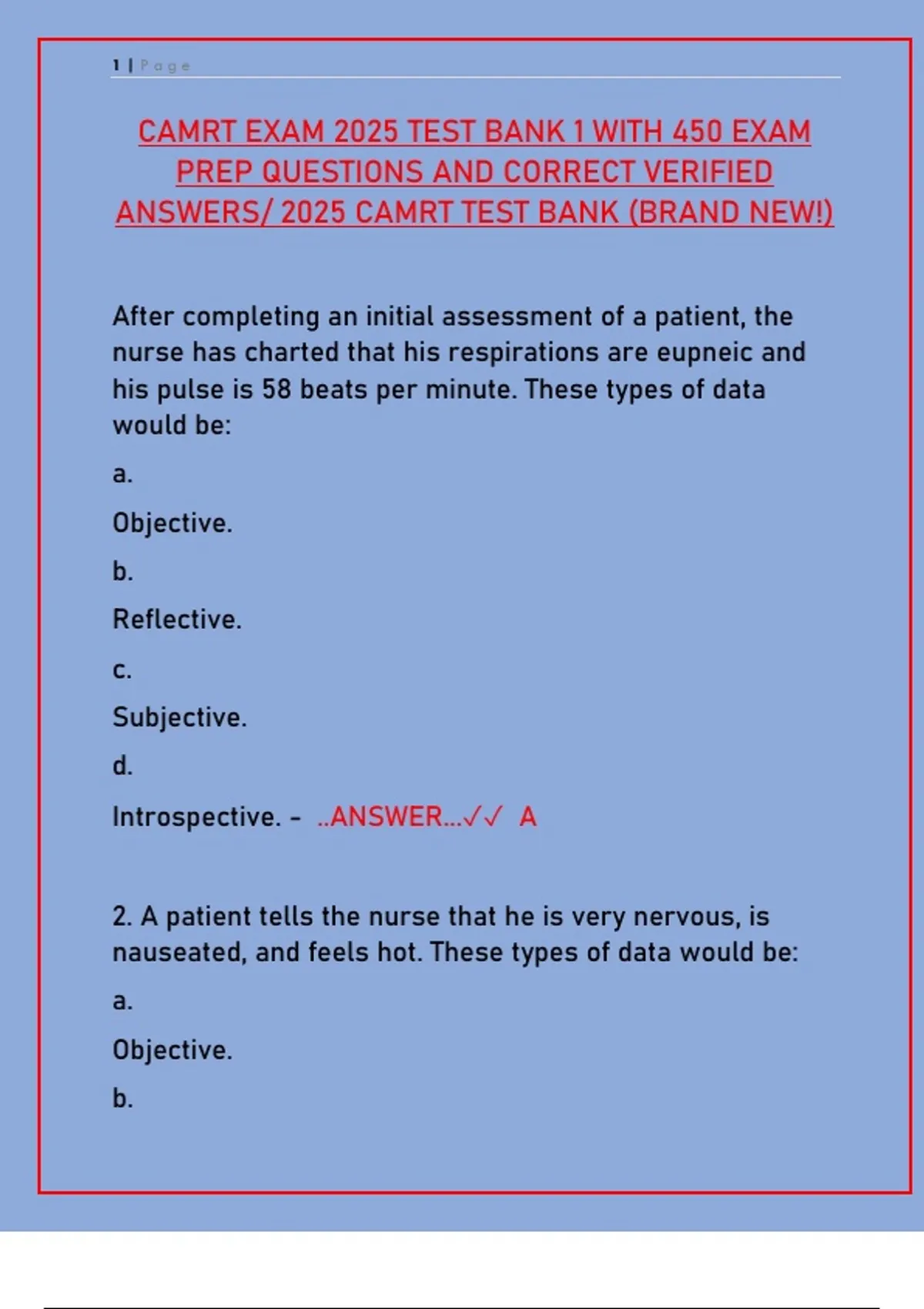 ANSWERS/ 2025 CAMRT TEST BANK (BRAND NEW!)