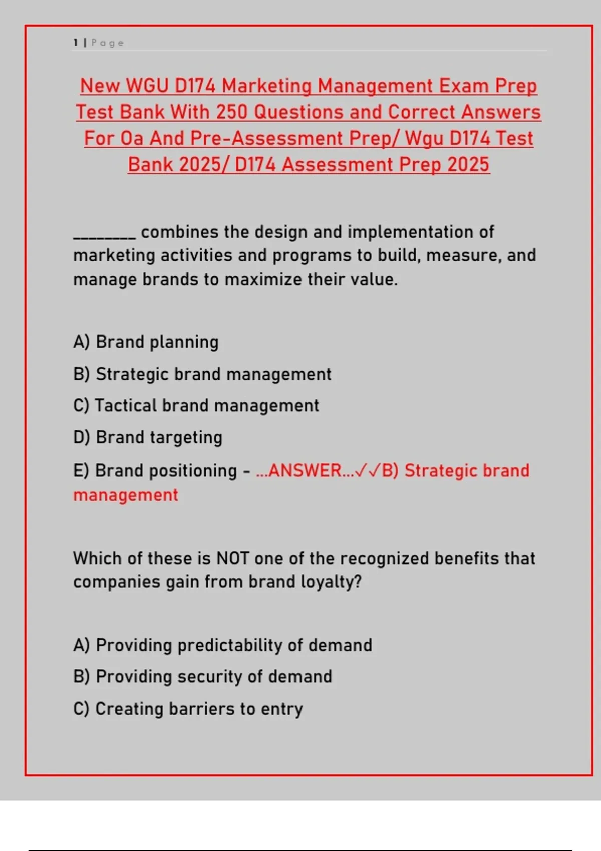 New WGU D174 Marketing Management Exam Prep