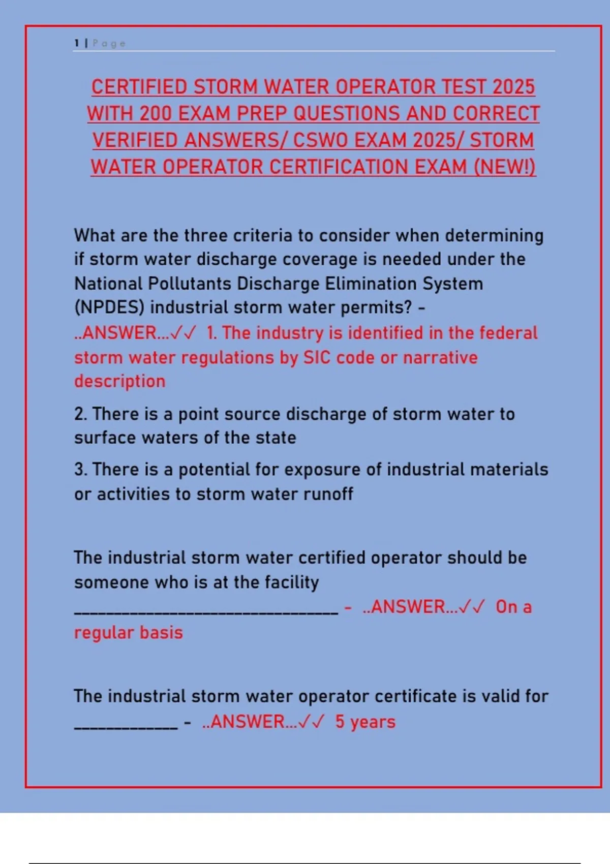 CERTIFIED STORM WATER OPERATOR TEST 2025