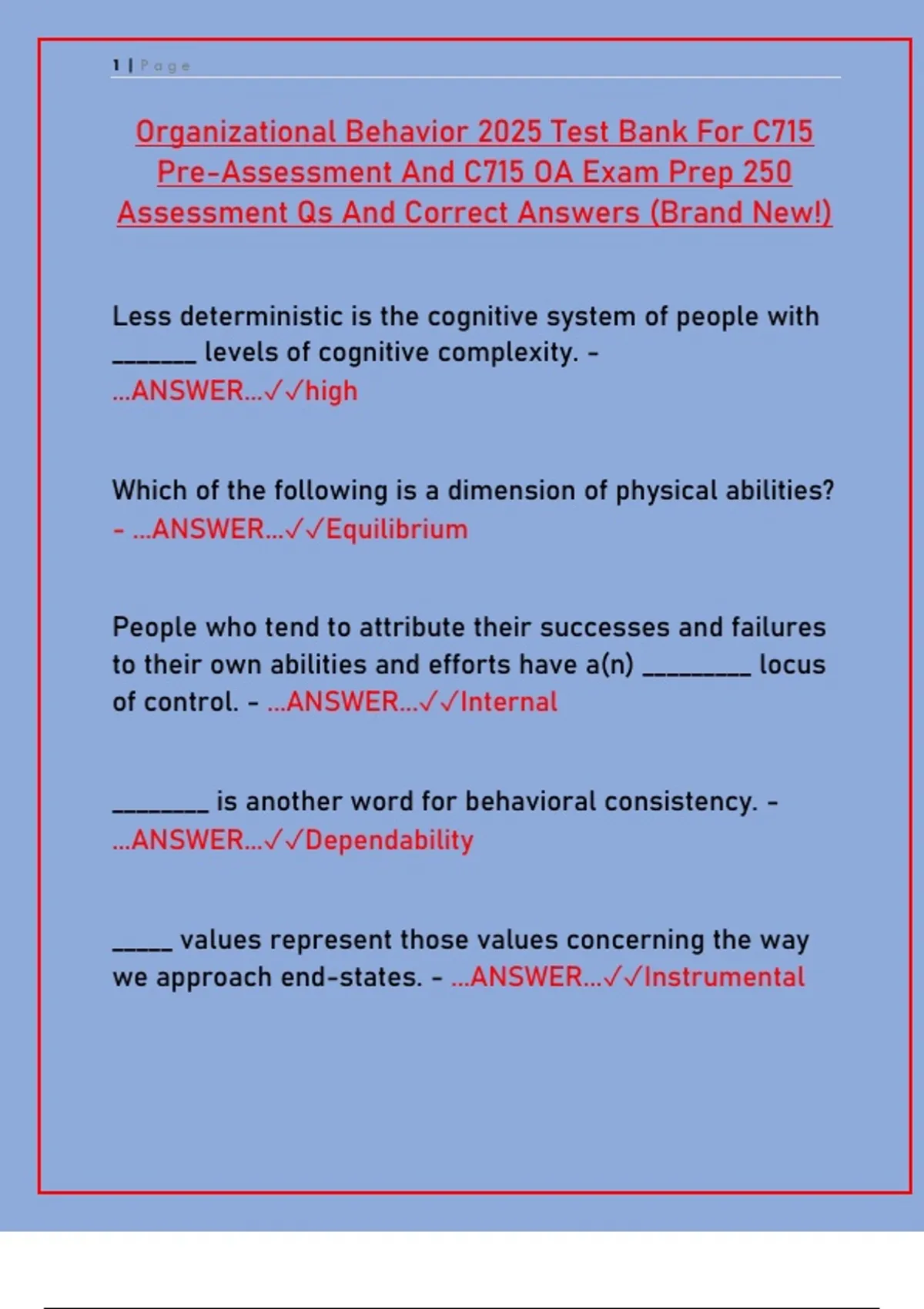 Access the complete Organizational Behavior 2025 test bank for WGU course C715. This PDF includes practice questions, answers, and exam prep materials aligned with the 2025 curriculum to help students prepare for assessments and master key OB concepts.
