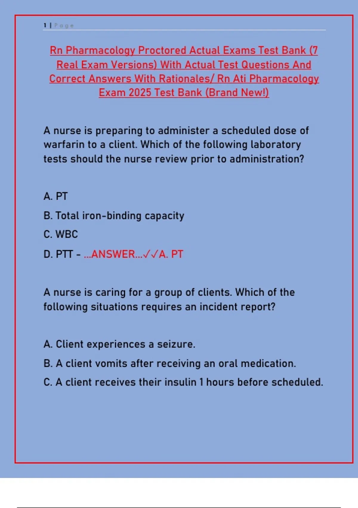 Rn Pharmacology Proctored Actual Exams Test Bank (7