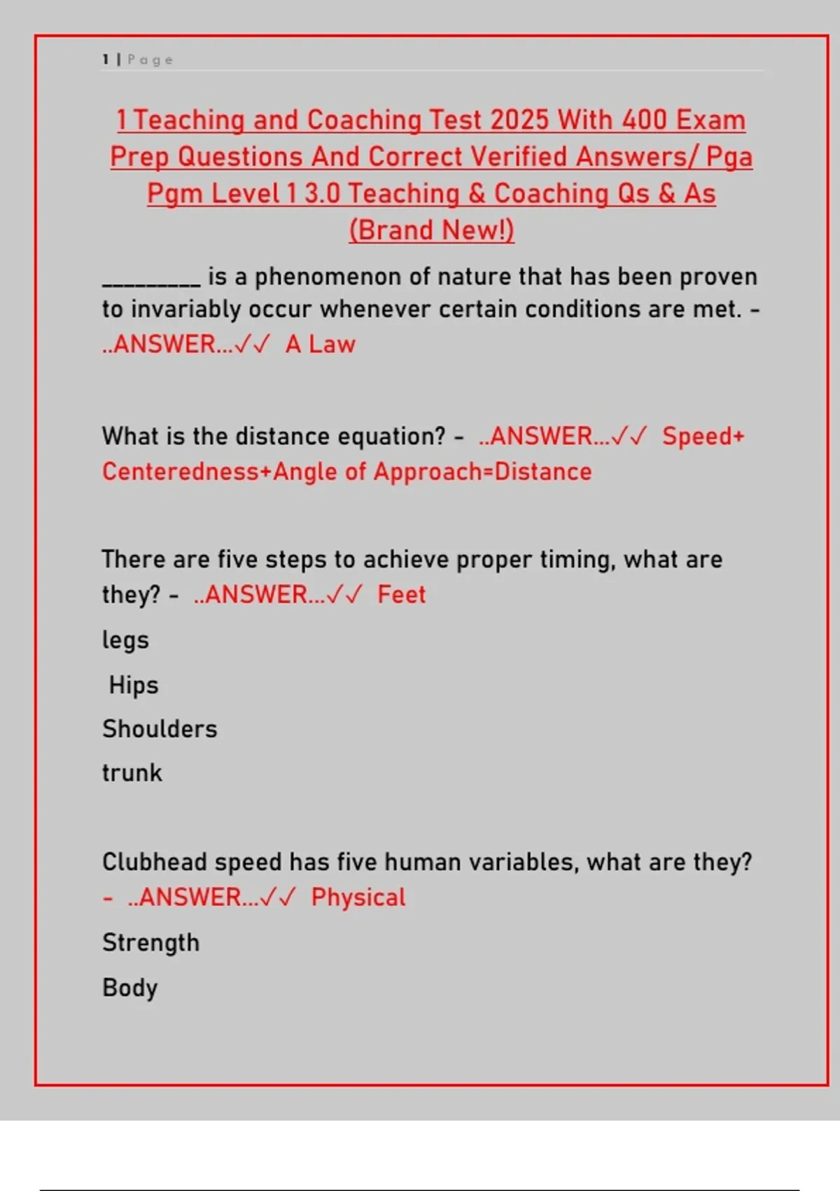 Pgm Level 1 3.0 Teaching & Coaching Qs & As