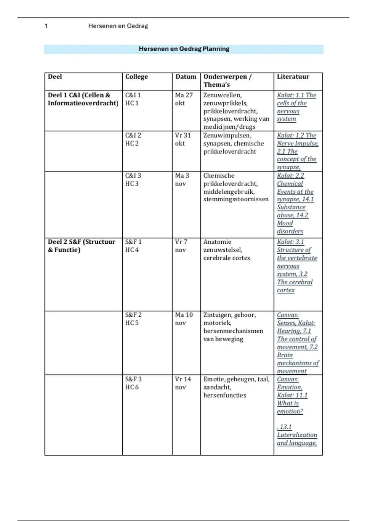 Hersenen en gedrag duidelijke samenvatting van hoorcolleges en benodigde literatuur van dit jaar 2025/2026