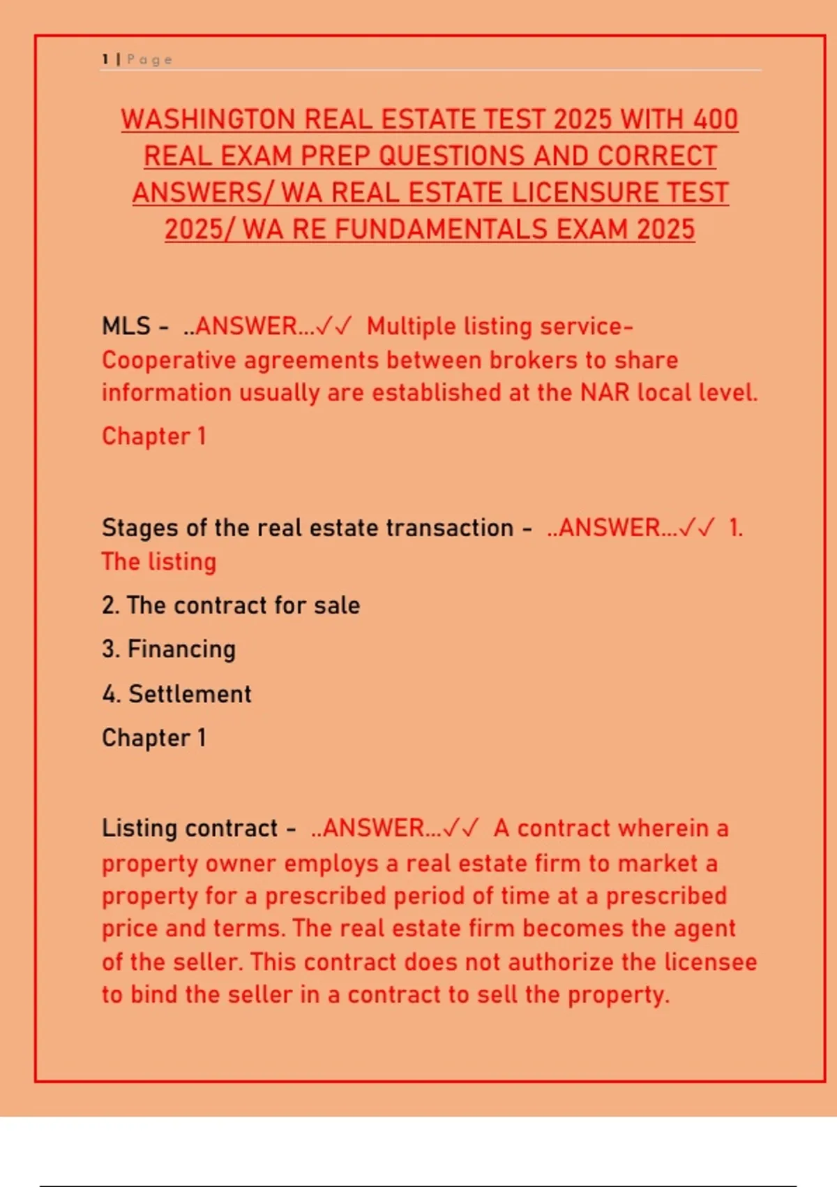WASHINGTON REAL ESTATE TEST 2025 WITH 400