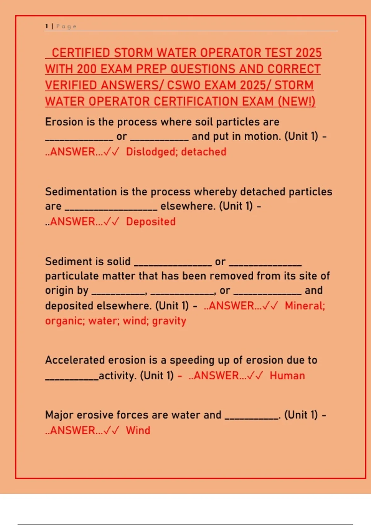 CERTIFIED STORM WATER OPERATOR TEST 2025