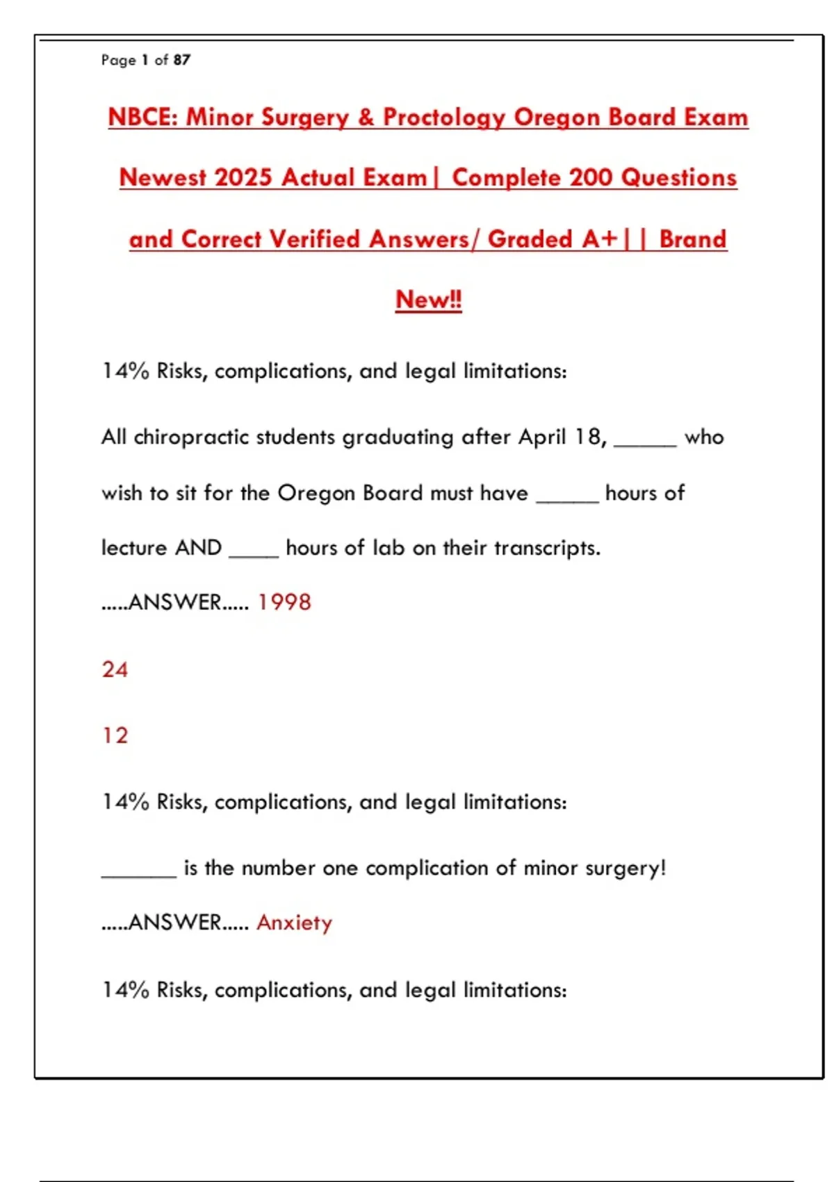NBCE: Minor Surgery & Proctology Oregon Board Exam