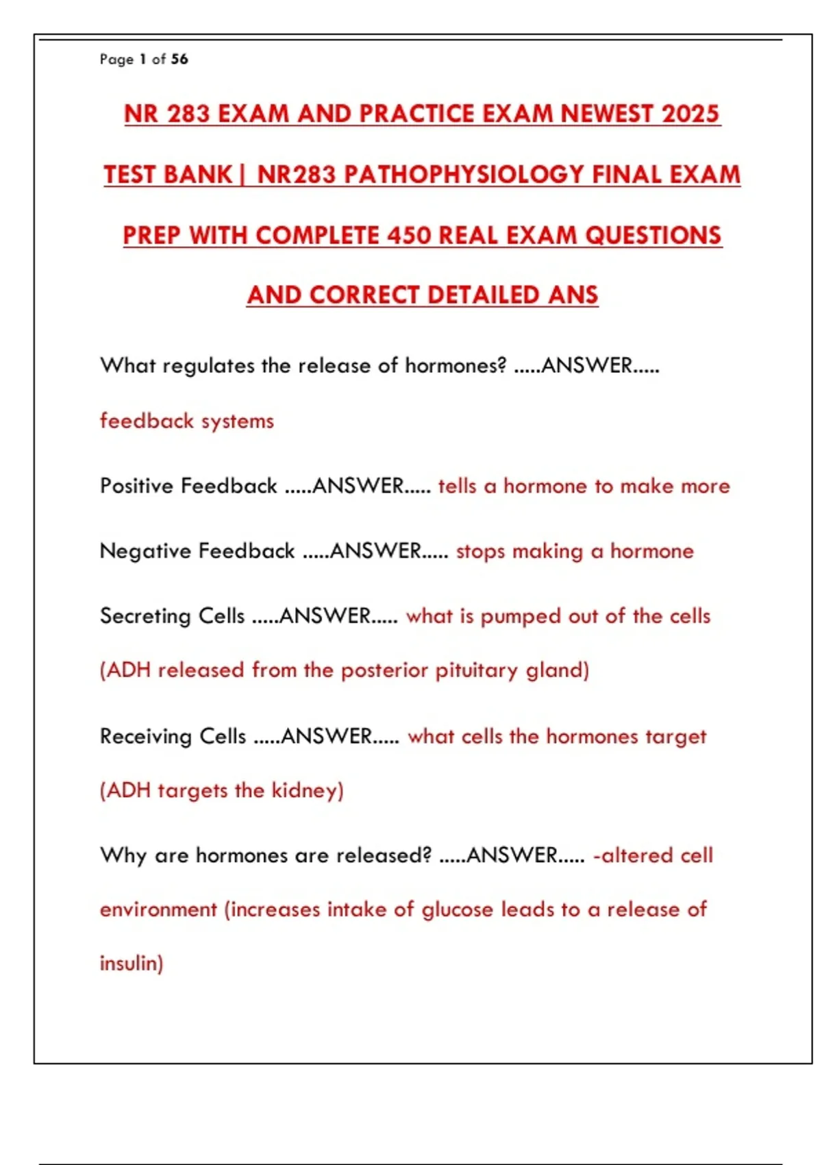 Ace your 2025 NR 283 Pathophysiology exams with this complete test bank. Features newest practice questions, rationales, and study guides covering all body systems for nursing students.