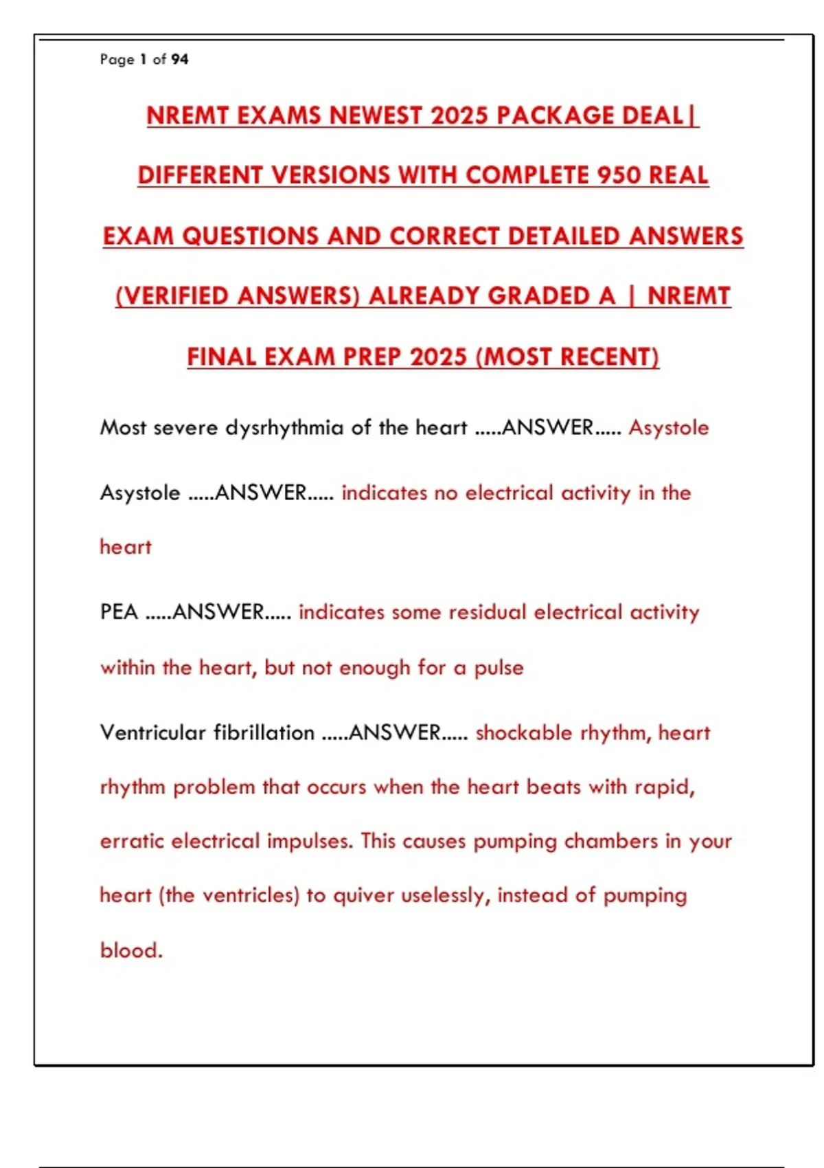 (VERIFIED ANSWERS) ALREADY GRADED A | NREMT