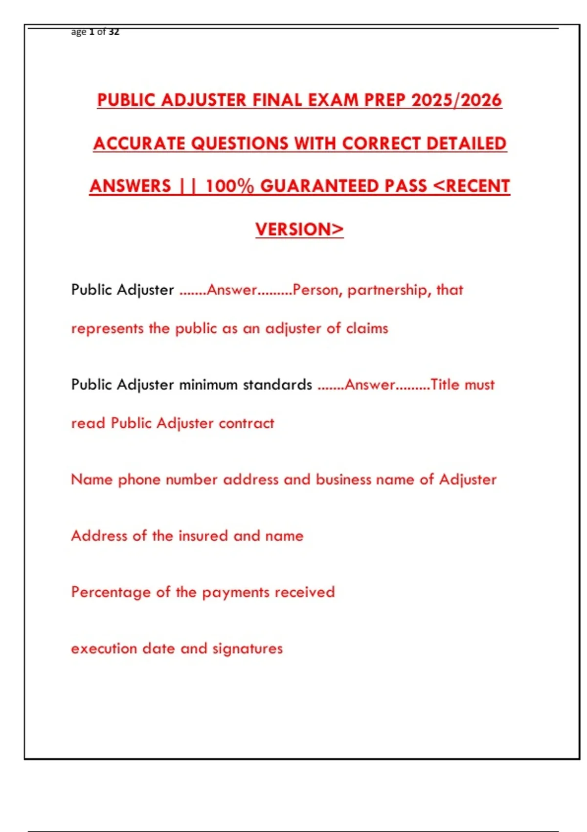 PUBLIC ADJUSTER FINAL EXAM PREP 2025/2026