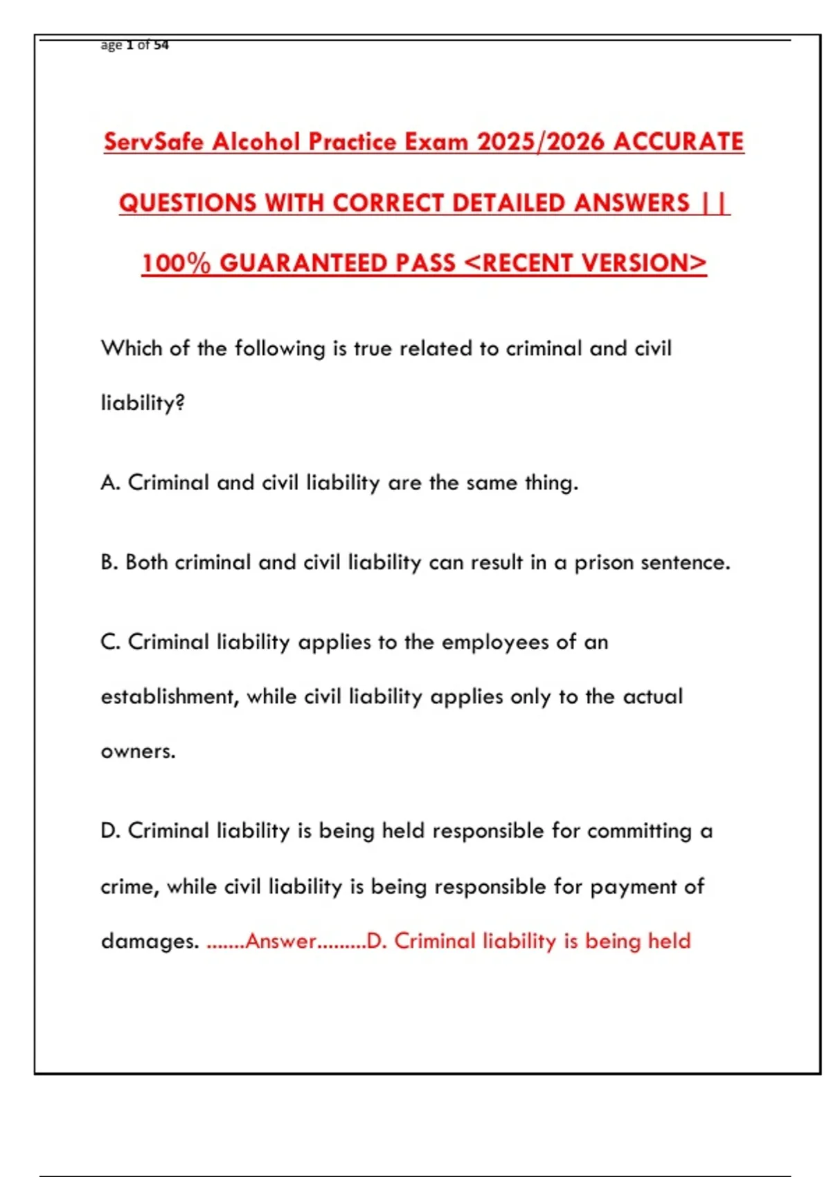 ServSafe Alcohol Practice Exam 2025/2026 ACCURATE