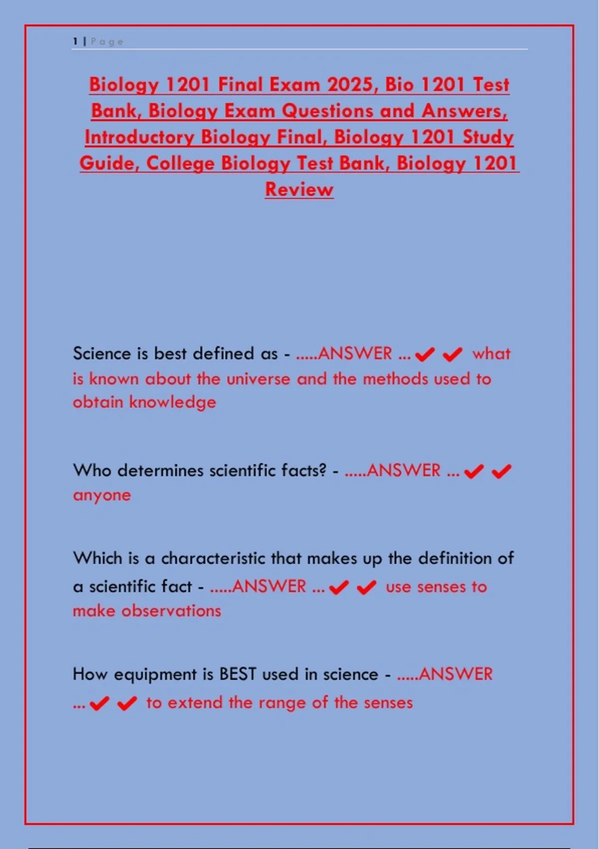 Biology 1201 Final Exam 2025, Bio 1201 Test