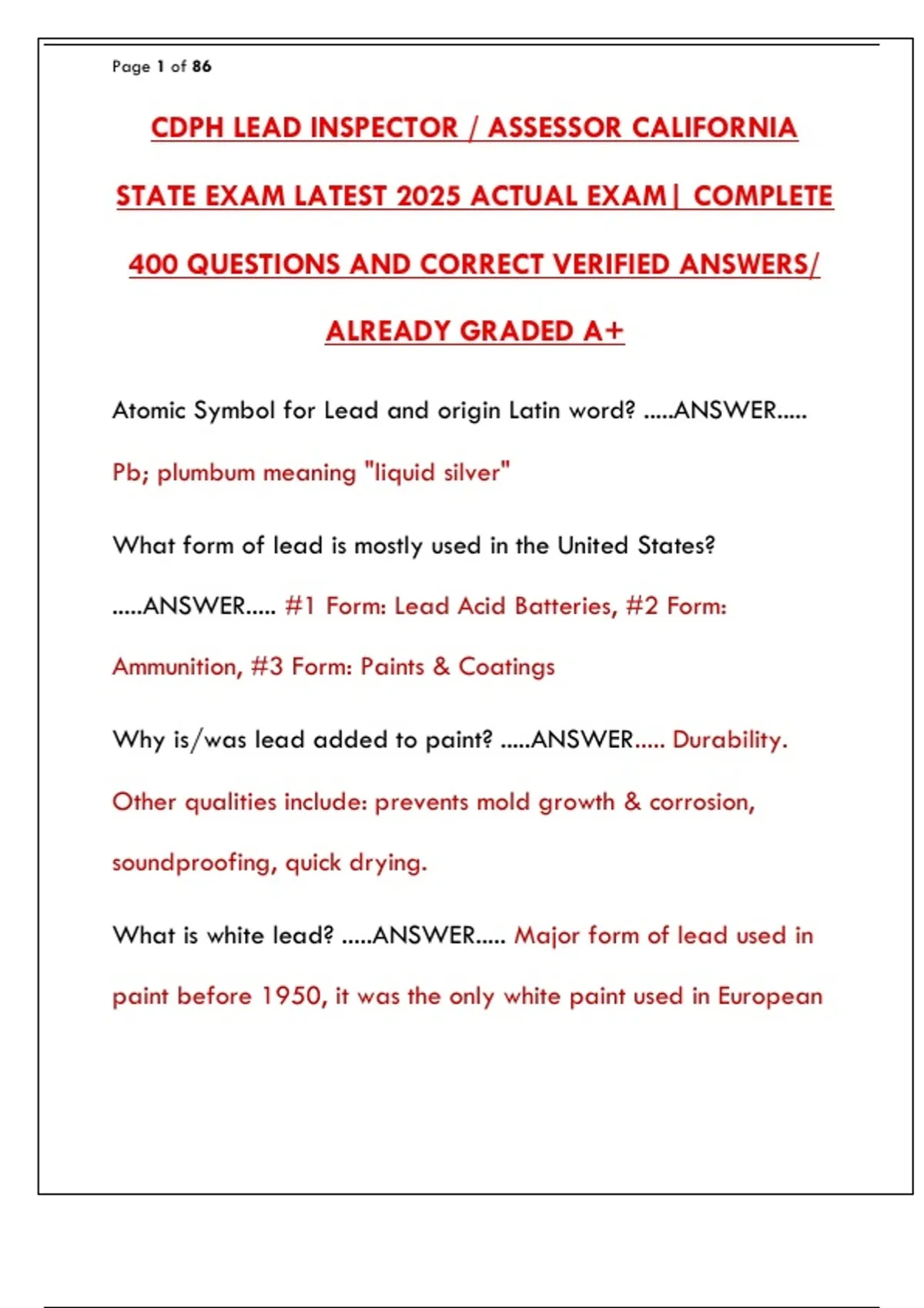400 QUESTIONS AND CORRECT VERIFIED ANSWERS/