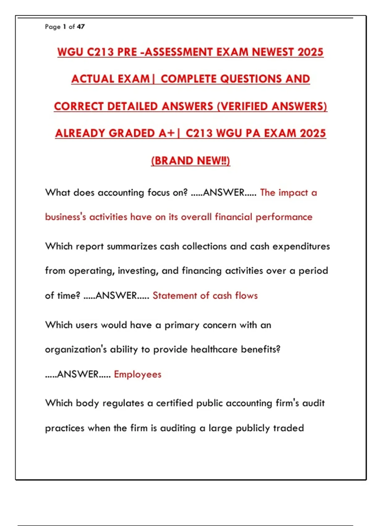 ALREADY GRADED A+| C213 WGU PA EXAM 2025