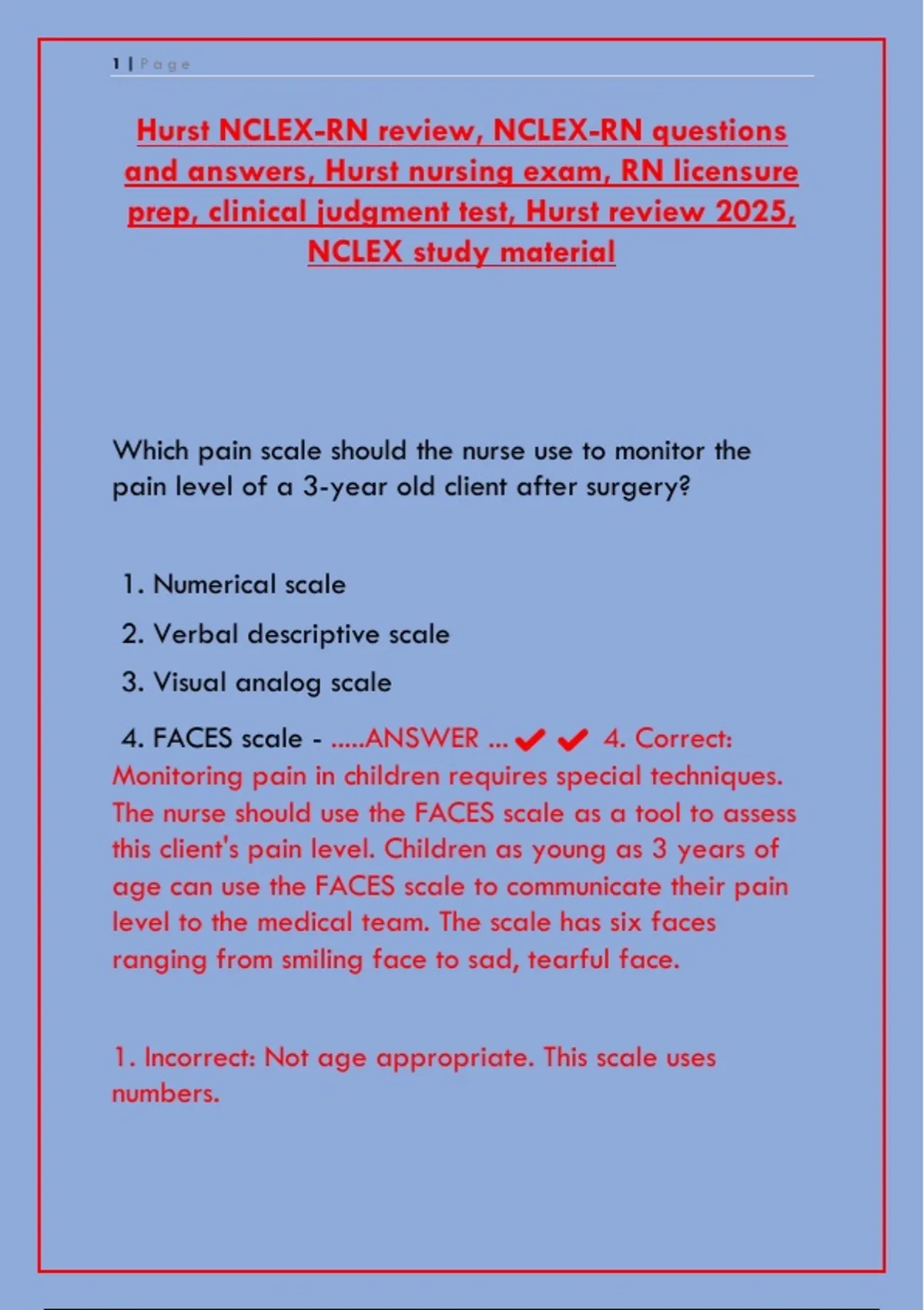 4. FACES scale - .....ANSWER ...✔✔ 4. Correct: