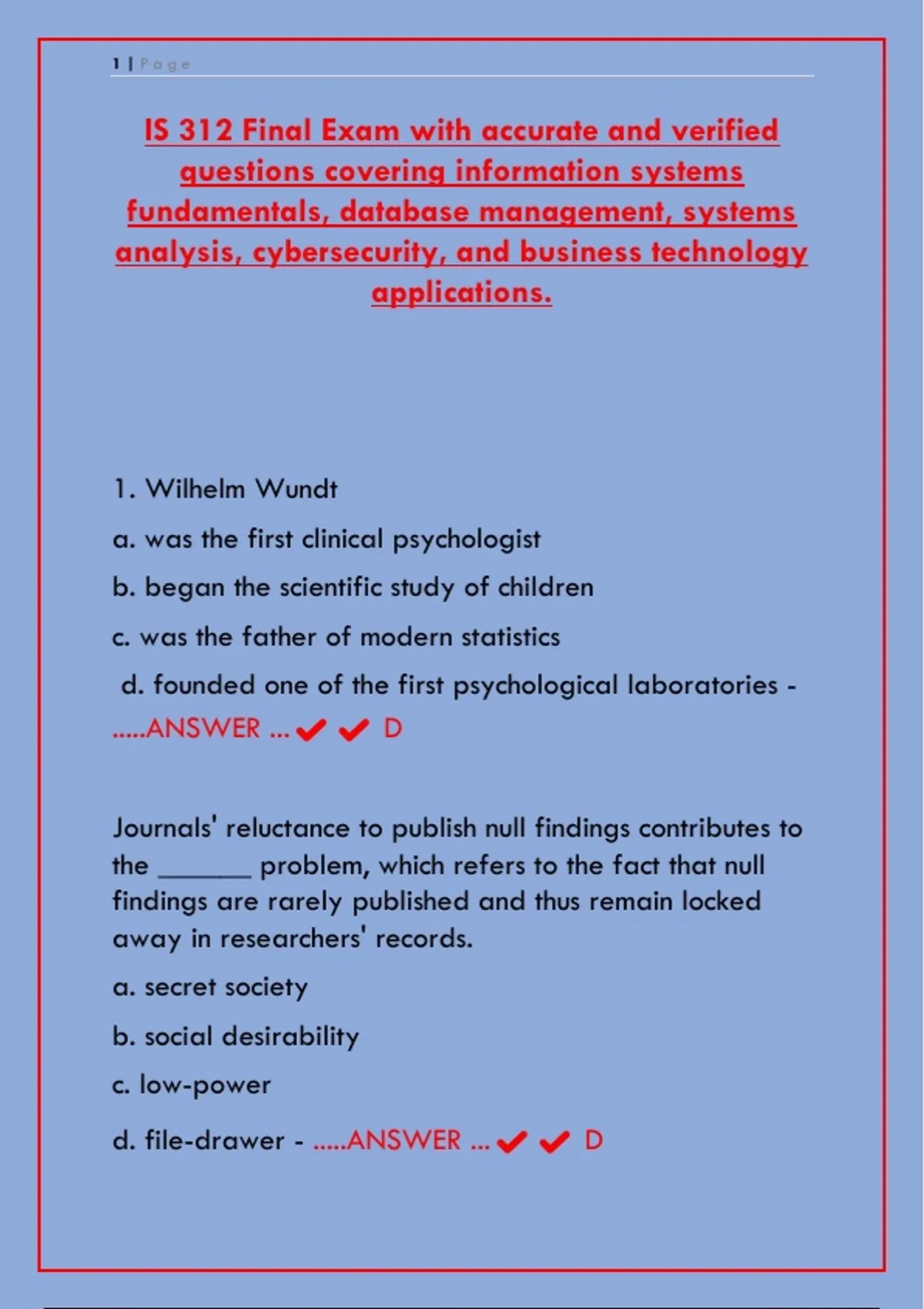 Download the comprehensive IS 312 Final Exam PDF. This document features accurate, verified practice questions and answers covering core Information Systems fundamentals, including hardware, software, data, networking, and strategic use of IT. Ideal for University of XYZ students preparing for their final assessment. (Note: This is a descriptive summary for the document. Always adhere to your institution's academic integrity policies.)