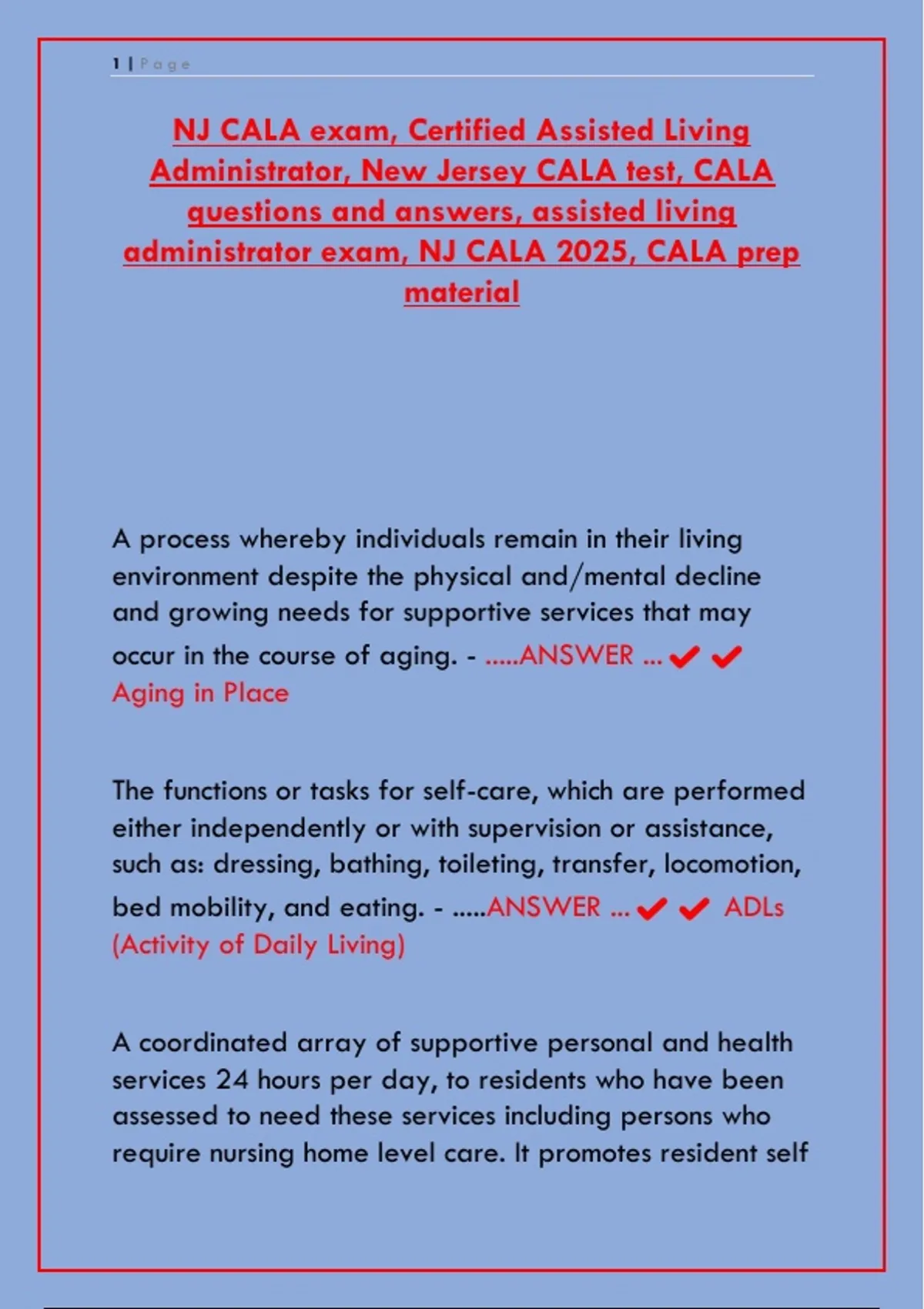 Your complete guide to the New Jersey Certified Assisted Living Administrator (CALA) exam. Learn about eligibility, exam subjects (resident care, operations, finance, law), application process, study resources, and tips for passing the state licensing test.